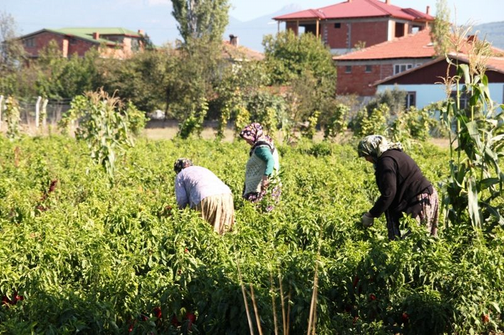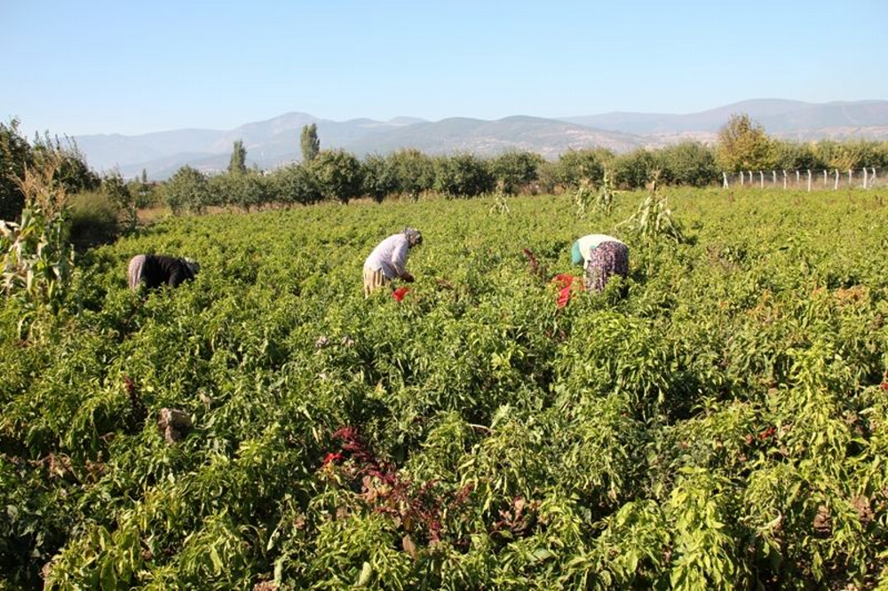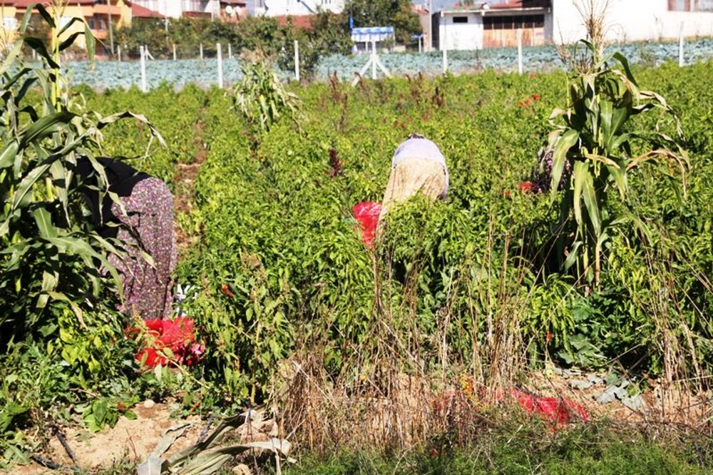 Geyve ile köylerinde salçalık biber dikenler son turfandalarını topluyor.