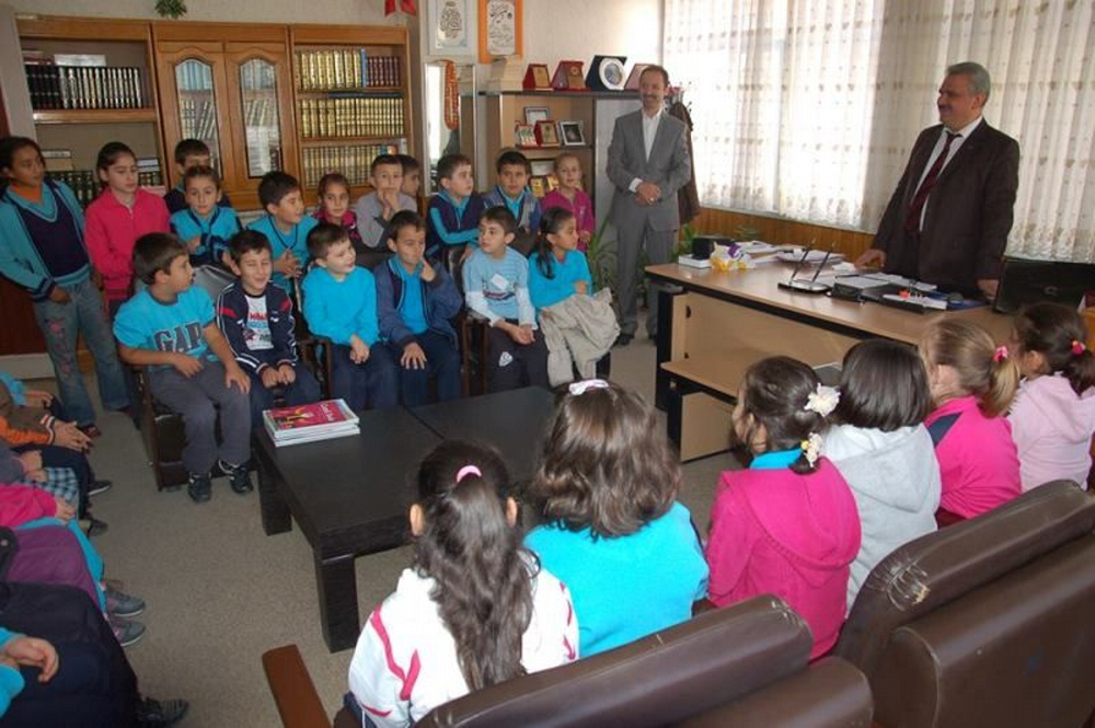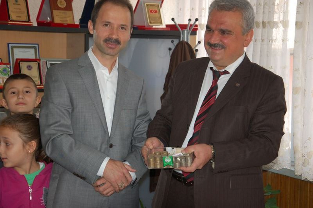 Atatürk İlkokulu küçük öğrencileri öğretmenleri Halil Yetiş ile birlikte kendi aralarında harçlıklarından topladıkları paraları kurban bağışında bulunmak üzere İlçe müftülüğüne gelerek İlçe müftüsü Ali Erhun' a teslim ettiler.