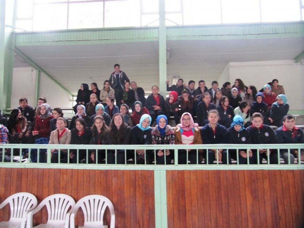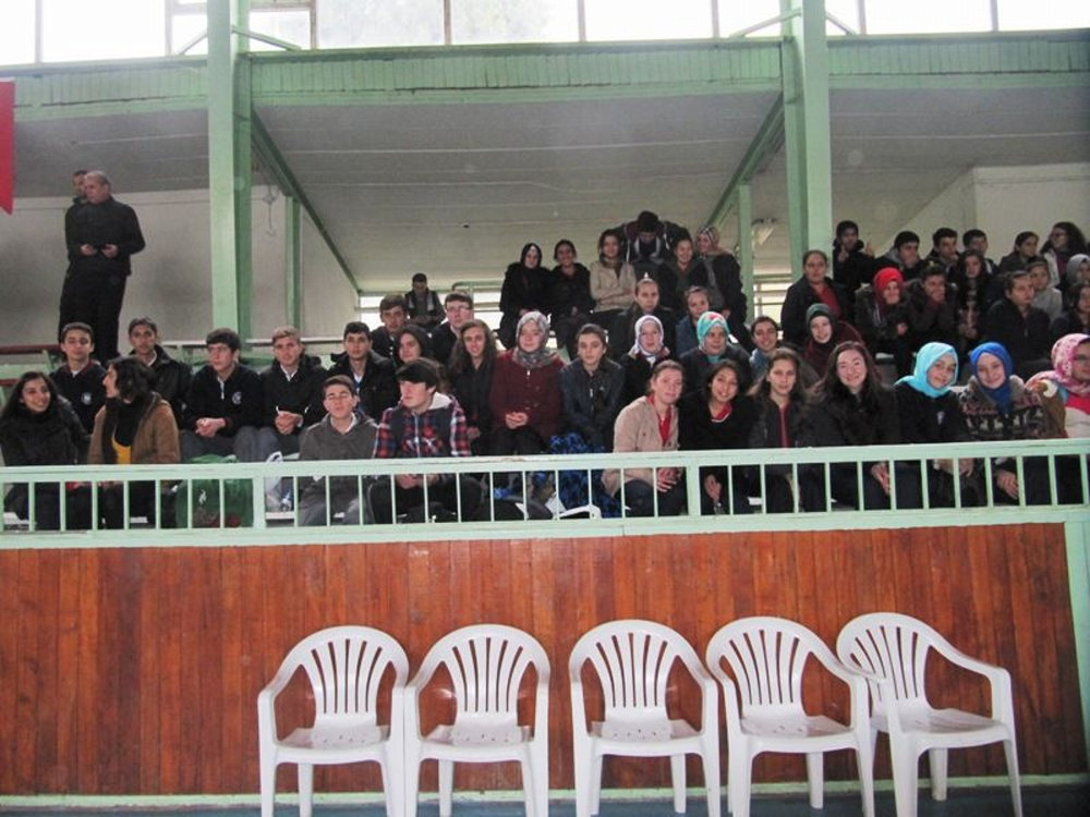 Geyve'deki Liseler arası kız-erkek voleybol turnuvası, Atatürk Kapalı Spor salonunda yapılıyor. Voleybol maçlarını izlemeye gelen seyirciler heyecandan yerinde oturamıyor.