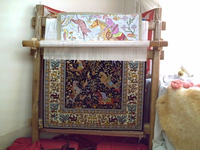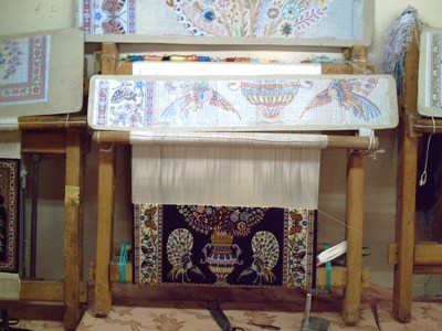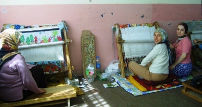 Kursiyer bayanlar Halı Tezgahlarının başında