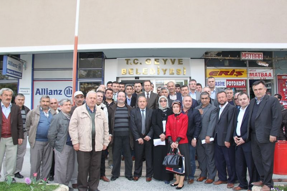 Geyve belediye başkanı Murat Kaya ve Belediye Encümen Üyeleri, Hakim Ali Özdemir'den mazbatalarını aldı.