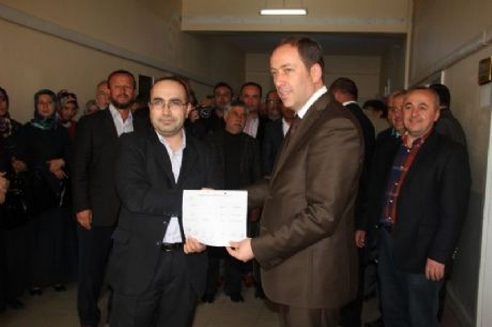 İlçe Seçim Kurulu başkanı Hakim Ali Özdemir, başkan ve üyelere başarılar dileyerek mazbatalarını verdi.