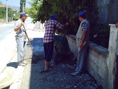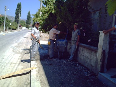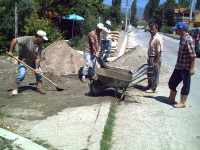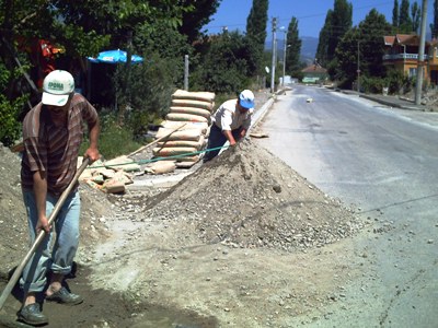 İşlerin yoğunluğu ve kış şartlarından tamamlanamayan Tepecikler Mahallesi Enver Paşa Sokakta Bulunan yarım kalmış banketler,Geyve belediyesi Fen İşlerince tamamlanıyor.