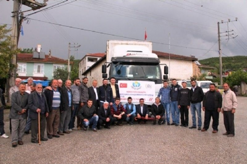 2 Mayıs Cuma günü Türkiye’de bir ilki gerçekleştirerek Cuma namazından sonra köy meydanından coşkulu bir kalabalık ile Eşme Camii İmam-Hatibi Ahmet TAŞÇI Hocaefendinin dualarıyla uğurlanan “Suriye’ye yardım TIR’ı” yardımları yerine ulaştırdı.