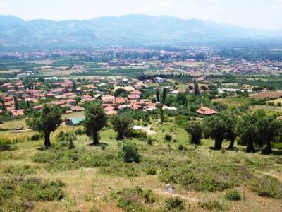 Zeytin Ağaçları'nın bulunduğu yerden ön plan Eşme Köyü ve Arka Planda Geyve'nin görünümü