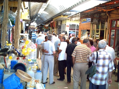 Çarşıdan geçen öğrenciler,okullarına doğru ilerliyor