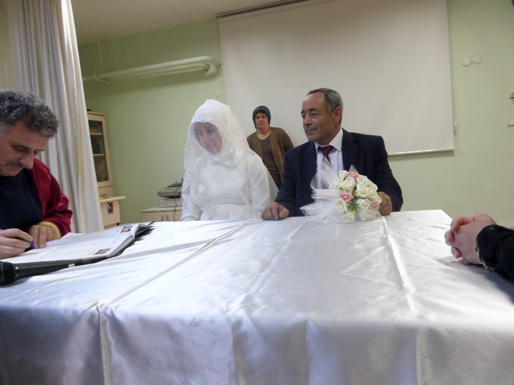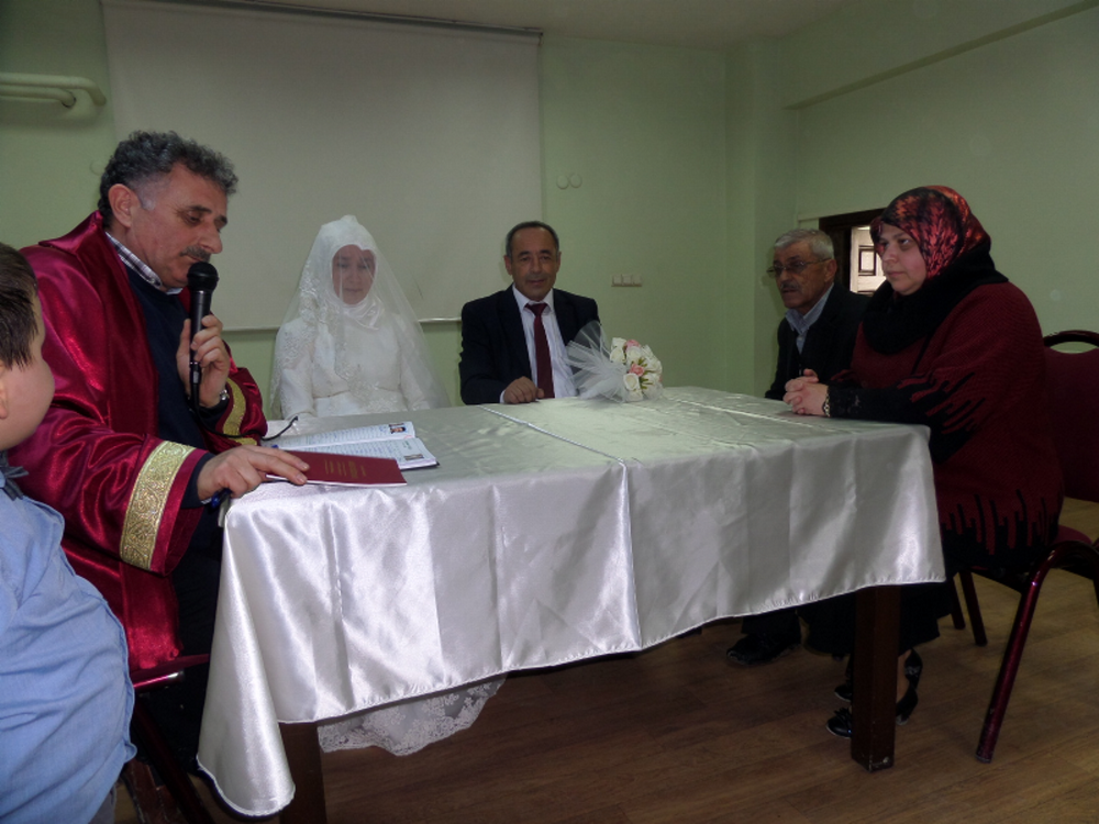 Münevver- Adem Arif çiftinin nikah merasimi, Geyve Kaymakamlığı Kültür Merkezi salonunda yapıldı. Nikah şahitliğini öğretmen Kerim Mazlum ve İlknur Bekiroğlu yaptı. Nikahı kıyan Geyve belediye başkan yardımcısı