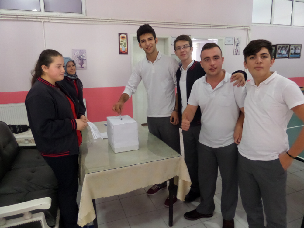 Bu görevleri yürütecek okul başkanı ve meclis üyelerini seçmek için öğretmenlerimizden Hamiyet Bilgekul, Esra Uçar ve Yaşar Göksinir ile öğrencilerimizden Asiye Uzel, Esra Çelik, Zeynep Yiğit, Esra Ören ve Elif Bulut gerekli çalışmaları yaptı.