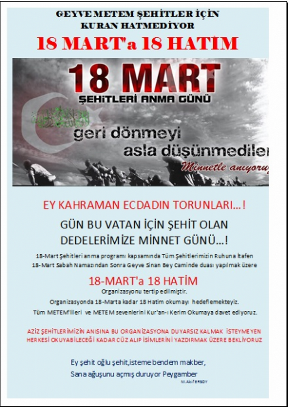 METEM'DEN 18 MART ŞEHİTLER GÜNÜ İÇİN 18 HATİM