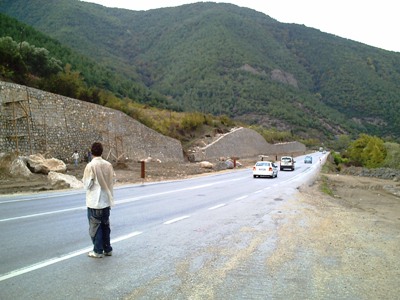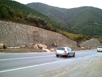 Sakarya Dörtyol'dan Bozüyük'e kadar yapımı devam eden Duble Yol'un kenarlarında toprağın kayamasına mani olmak için yapılan istinat duvarlarının yapımı aralıksız devam ediyor.
