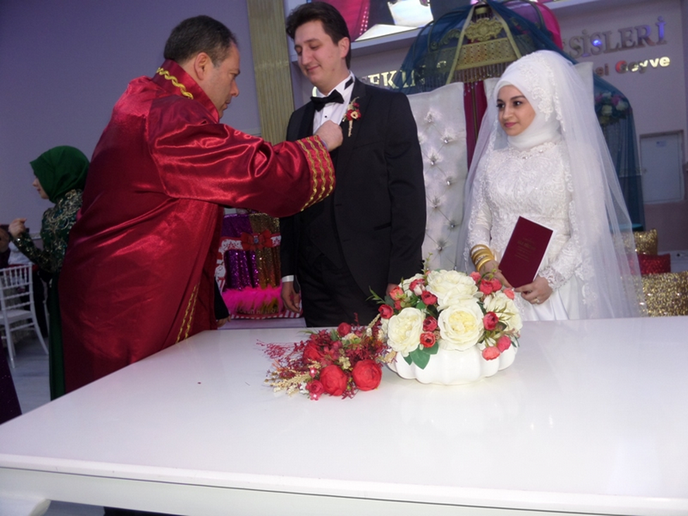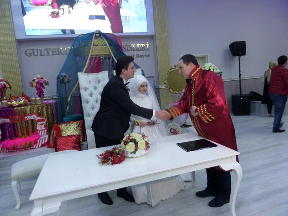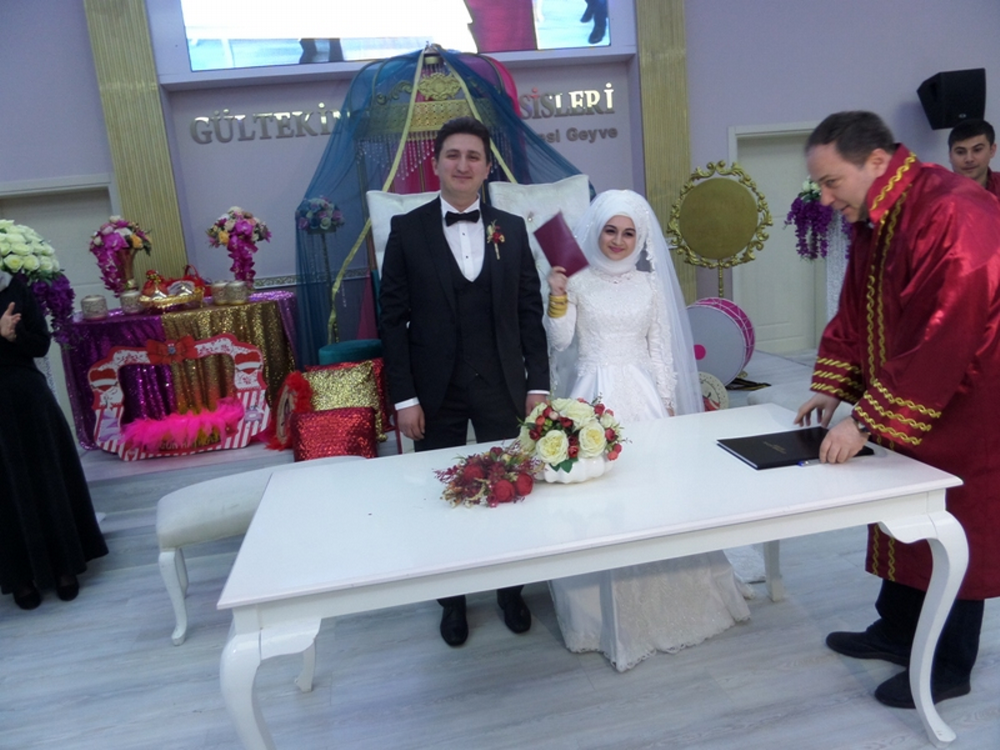 Zeynep ile Ömer Eriş'in nikahlarını,Geyve belediye başkanı Murat Kaya kıyarken, gençlere mutluluklar diledi.