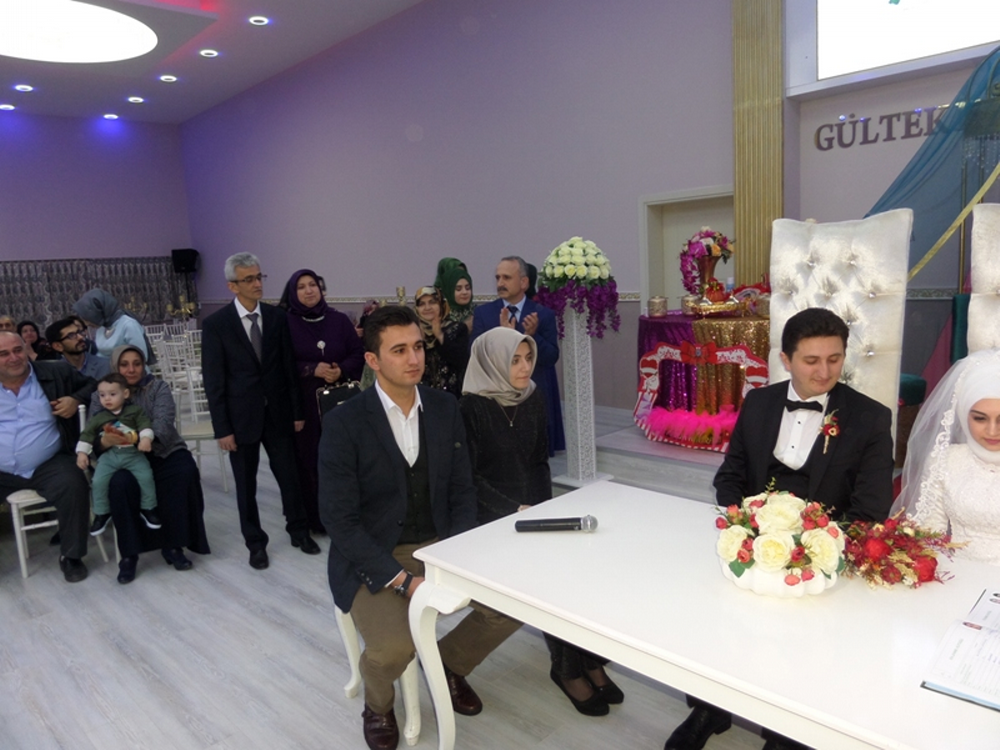 Genç çiftlerin, Gültekin Sosyal Tesislerinde yapılan kına gecesine ve düğünlerine çok sayıda akraba, dost ve arkadaşları katıldı. Kız tarafı, nişana gelenlere keşkek, erkek tarafı da düğüne gelenlere yemek ikram etti.