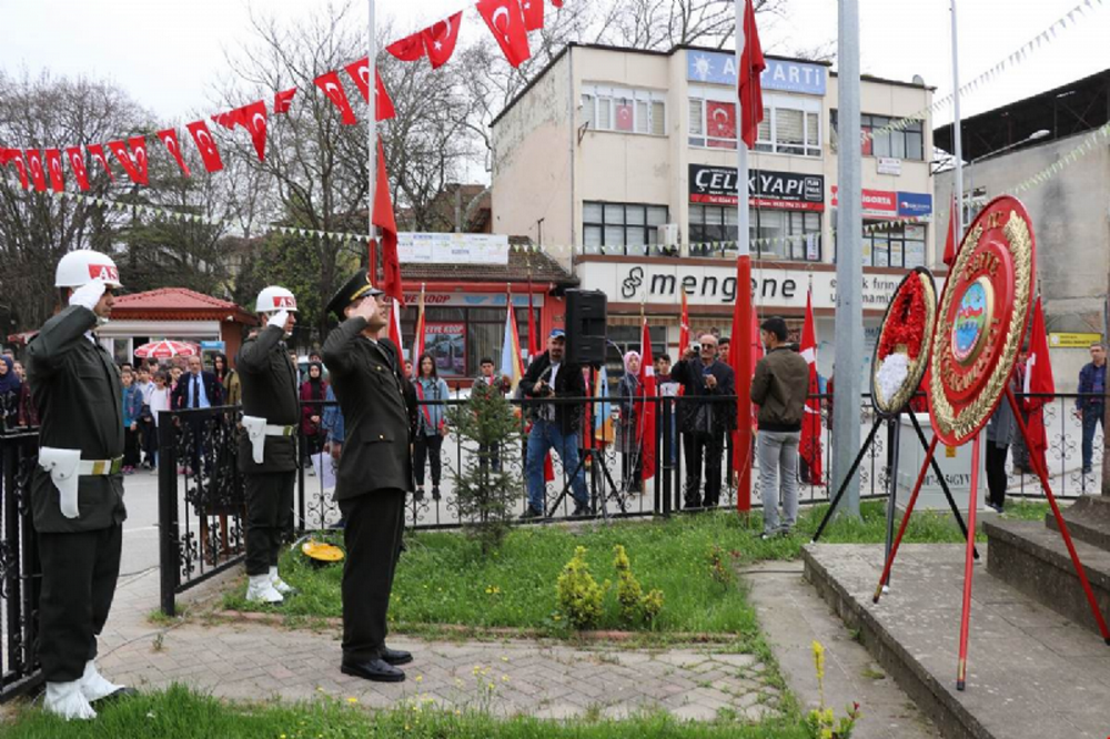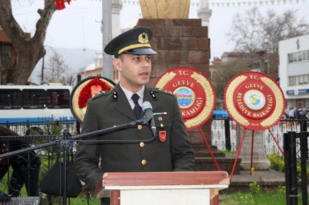 İlk program Cumhuriyet Meydanındaki Atatürk Anıtına çelenk sunma töreniyle başladı. Törene Kaymakam İlyas Memiş, Garnizon Komutanı Per. Yzb. Taner Çolak, Geyve Belediye Başkanı Murat Kaya, daire amirleri, gazilerimiz, öğretmenler, öğrenciler ve vatandaşlarımız katıldı. Cumhuriyet Meydanındaki Atatürk anıtına çelenkleri sunulmasının ardından saygı duruşu ve İstiklal Marşı okundu. Törende günün anlam ve önemini belirten konuşmayı Garnizon Komutanı Per.Yzb. Taner Çolak yaptı. .