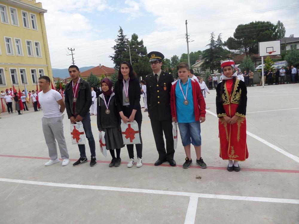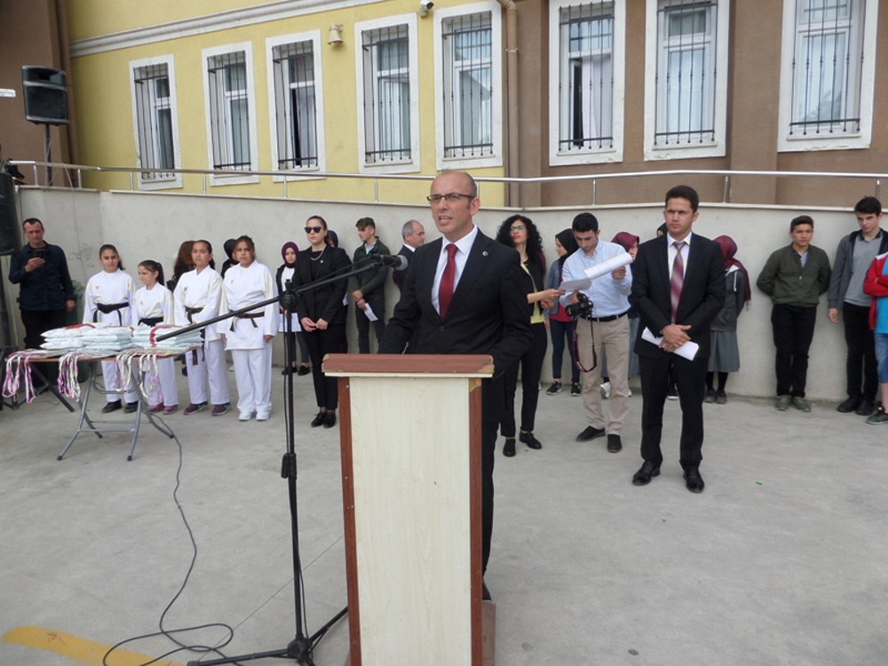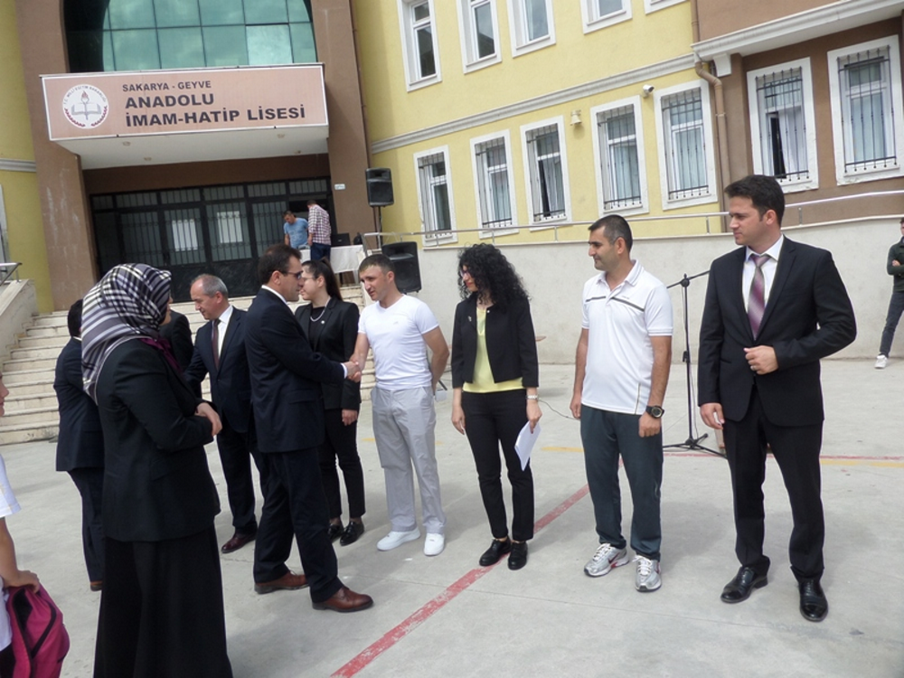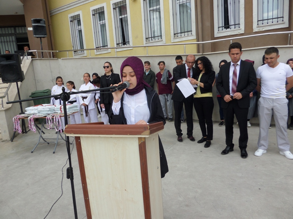 Geyve'deki ilk tören Gençlik ve Spor Müdürü Nurcan Tabakoğlu'nun öncülüğünde Atatürk anıtına çelenk sunumu, saygı duruşu ve İstiklal Marşı ile başladı,Geyve Anadolu İmam-Hatip Lisesinin bahçesinde devam etti. Programı METEM öğretmeni Sevda Canlıer ile Osmangazi Ortaokul öğretmeni Gökhan Er başarıyla sundu. Törene Geyve kaymakamı İlyas Memiş, Garnizon Komutan vekili Mustafa Gündüz, belediye başkan vekili Neşet Çakır Cumhuriyet Başsavcısı Tacettin Aykol, Jandarma komutanı Yzb. R.Gökhan Civek, AK Parti İlçe başkanı Abdullah Özdemir, CHP ilçe başkanı Recep Güner, Milli Eğitim Müdürü Mehmet Doğan, Halk Eğitim Müdürü Mustafa Doğan, daire amirleri, okul müdürleri, öğretmenler, öğrenciler ve çok sayıda vatandaş katıldı. İlçe Gençlik ve Spor Müdürü Nurcan Tabakoğlu, günün anlam ve önemini belirten konuşma yaptı. Öğrenciler Atatürk'ün Gençliğe Hitabesini, Geçliğin Ata'ya Cevabını ve kahramanlık şiirleri okudu. Beden Eğitimi öğretmeni Fatih Özdin yönetiminde tüm öğrenciler şeref çağrısı yaptı. Okullar arası yapılan atletizm, şiir ve kompozisyon gibi etkinliklerde dereceye giren öğrencilere ödülleri verildi. Geyve Karaçam Ortaokulu öğretmeni Safiye Bostancı'nın hazırladığı Artvin yöresi oyunları, Sinan Bey METAL'in mehter takımı, HEM karate ve paten gösterileri çok beğenildi. Mehmet AYDOĞAN Geyve Haber |