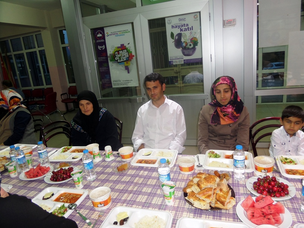 Geyve Anadolu Lisesi salonunda düzenlenen iftar yemeğine İlçe Milli Eğitim Müdürü Mehmet Doğan, okul müdürü Ahmet Akkuş, öğretmenler, şehit yakınları, gaziler ve aileleri katıldı.