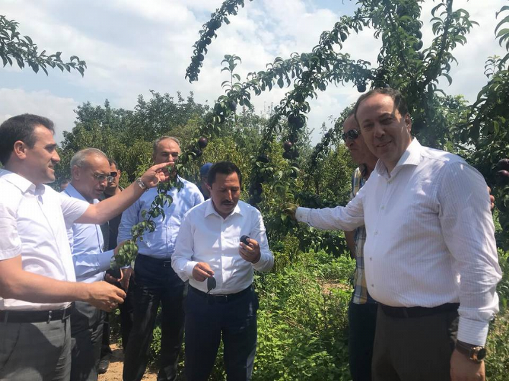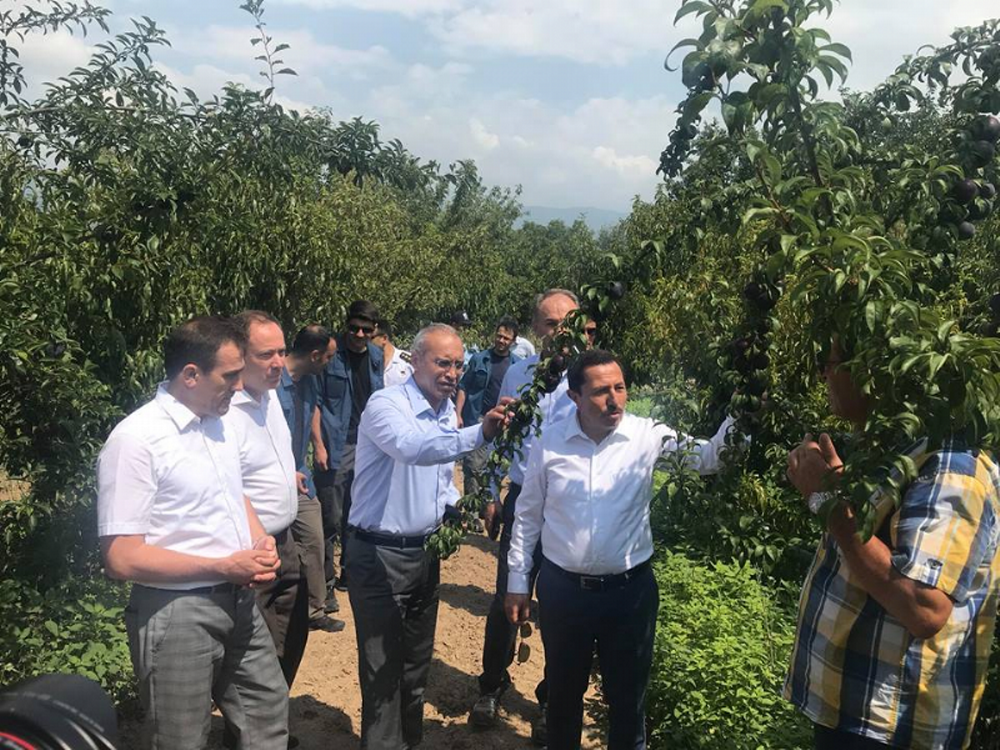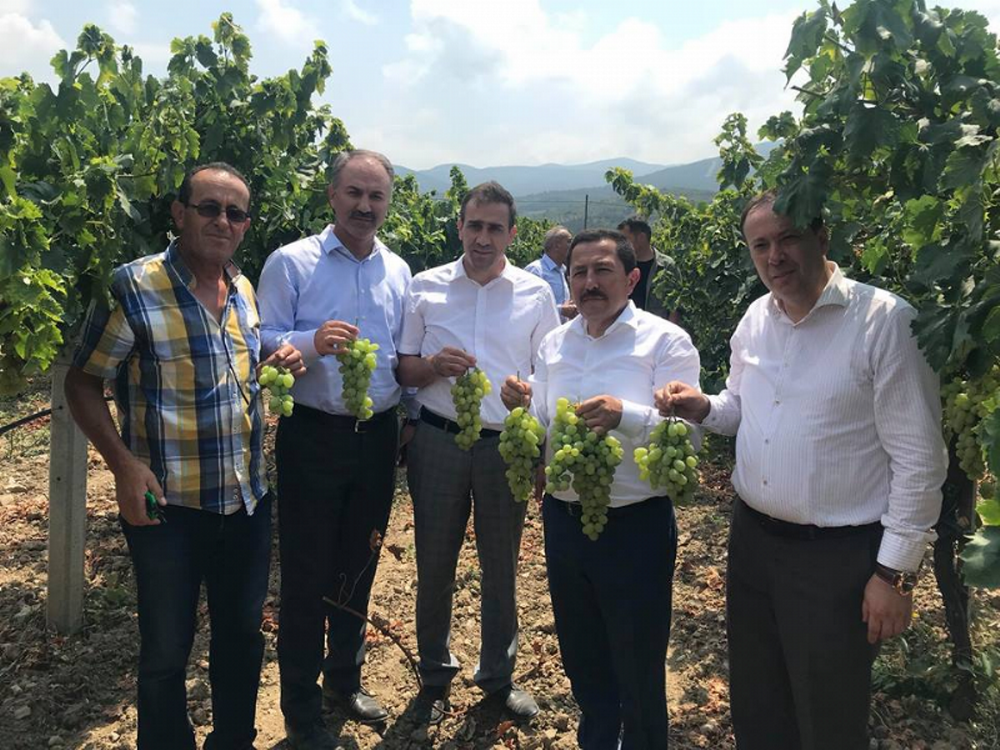 Vali İrfan Balkanlıoğlu üretim merkezinin ardından verimli topraklarıyla sebze-meyve ambarı ilçede ki üzüm bağlarını ve meyve bahçelerini de gezdi. Geyve Umurbey Köyü Muhtarı Osman Önal’ın üzüm bağlarını ve meyve bahçelerini ziyaret eden Balkanlıoğlu yine canlı yaparak üreticiden ürünlerin tanıtımını ve pazarlaması hakkında bilgiler aldı. Ürün çeşitliliği, pazarlama konularında bilgiler alan Balkanlıoğlu ilçede ziyaret ettiği her mekandan canlı yayın yaparak tanıtımına katkı vermeye çalıştı.