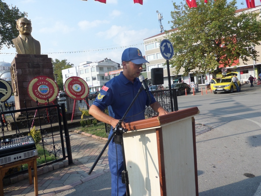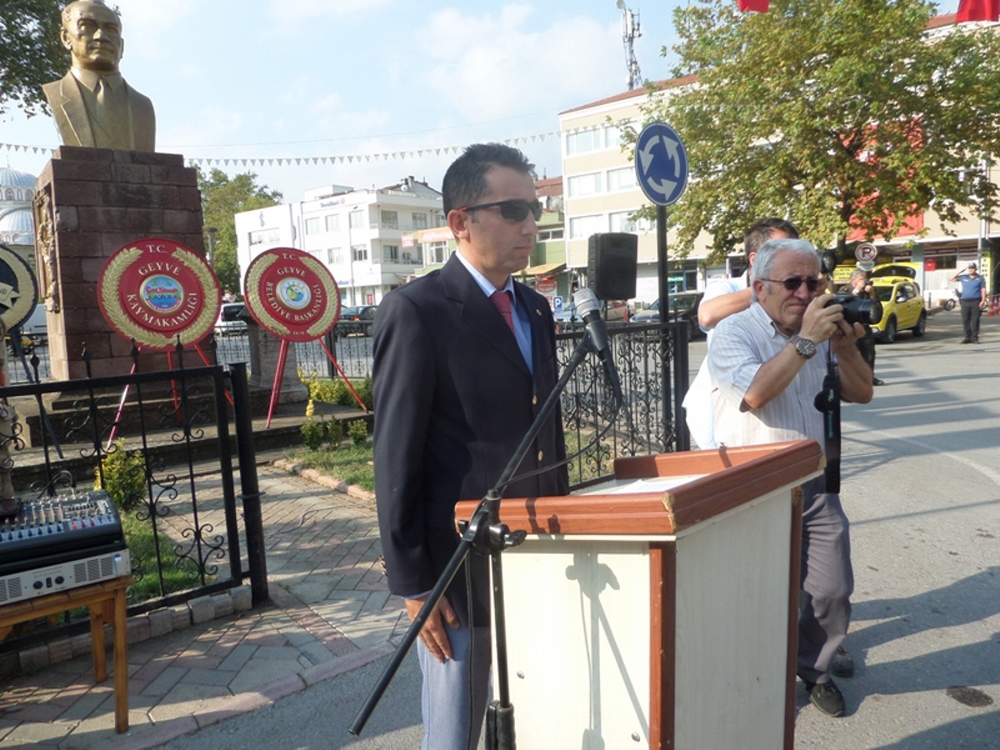 Geyve Cumhuriyet Meydanında kutlanan 30 Ağustos Zafer Bayramına ilçe kaymakamı İlyas Memiş, Garnizon komutanı Asteğmen Hakan Has, belediye başkanı Murat Kaya, Cumhuriyet Başsavcısı Tacettin Aykol, Milli Eğitim Müdürü Mehmet Doğan, daire amirleri, askeri erkan, okul idarecileri, siyasi parti temsilcileri, gaziler ve vatandaşlar katıldı.