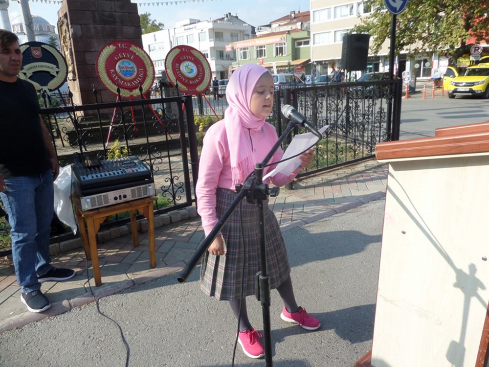 Programı Kozan Ortaokulu müdürü Vedat Duman sundu. Atatürk Anıtına çelenkler kondu. Saygı duruşu ve İstiklal Marşından sonra Jandarma Üsteğmen Gürkan Sakallı günün anlam ve önemini belirten konuşma yaptı. Geyve İmam Hatip Ortaokulu öğrencisi Azra Betül Erol kahramanlık şiiri okudu.