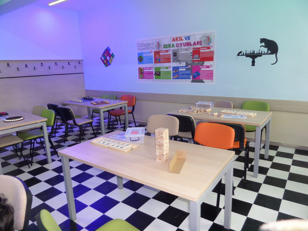 Geyve Anadolu İmam-Hatip Lisesi müdür yardımcısı Mustafa Tarakçıoğlu'nun rehberlik ettiği zeka oyunları sınıfında öğrenciler; satranç, mangala, reversi, koridor, jenga, hanoi kuleleri, piramit, sumo gibi çeşitli oyunlar oynuyorlar.