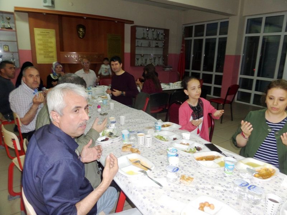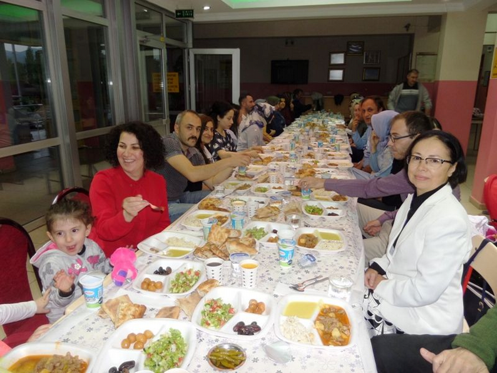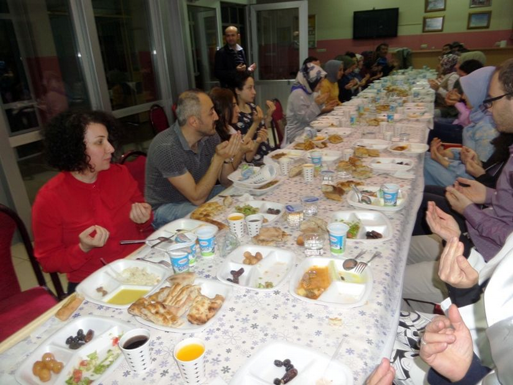 Geyve Anadolu Lisesi salonunda düzenlenen iftar yemeğine okul müdürü Ahmet Akkuş ve eşi, müdür yardımcıları, öğretmenler ile eşleri katıldı.