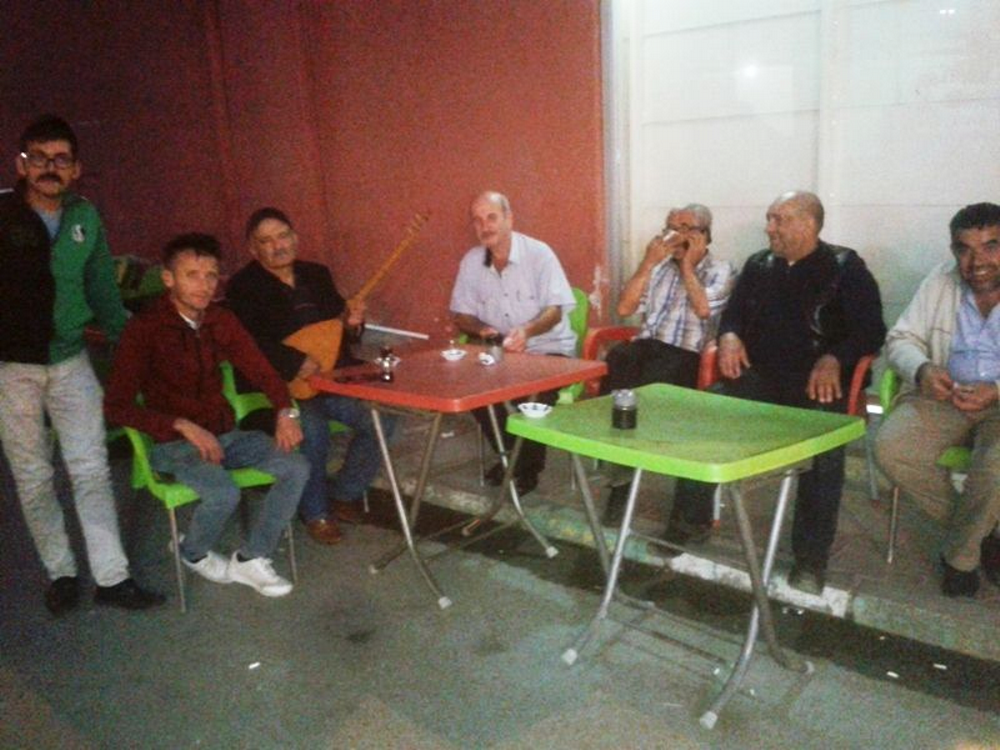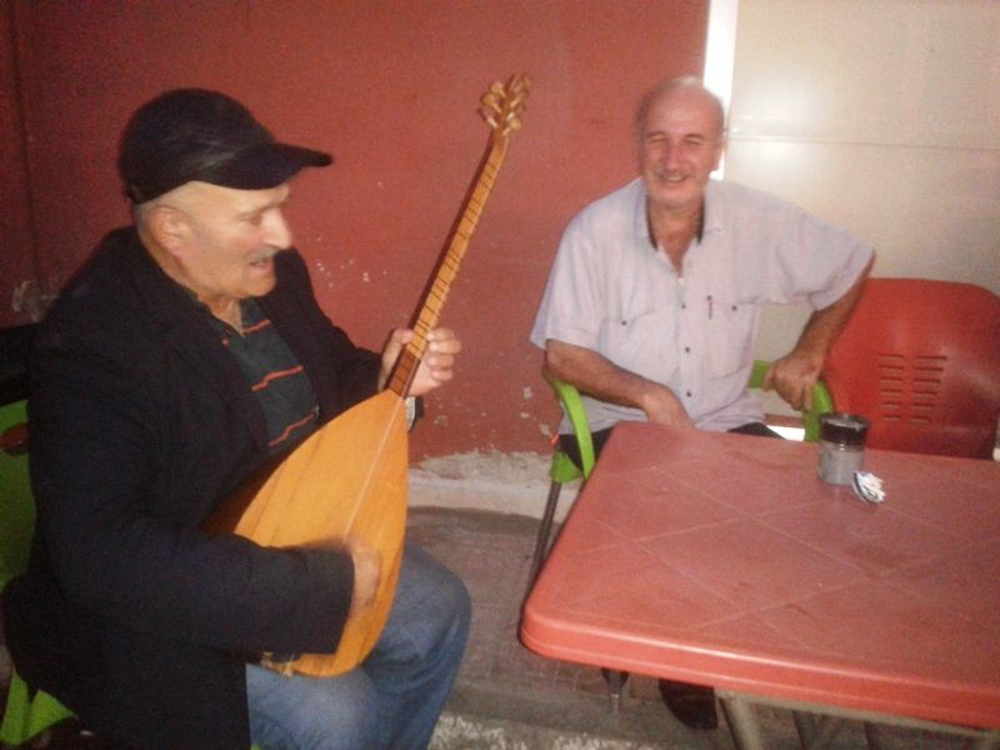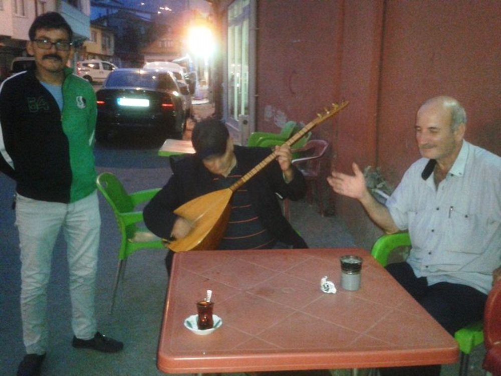 Alifuatpaşalı terzi Zekai Büyükçetin de zaman zaman Hicabi Çokçekti'ye şarkılarıyla eşlik ediyor. Dinleyenler beğeniyor.