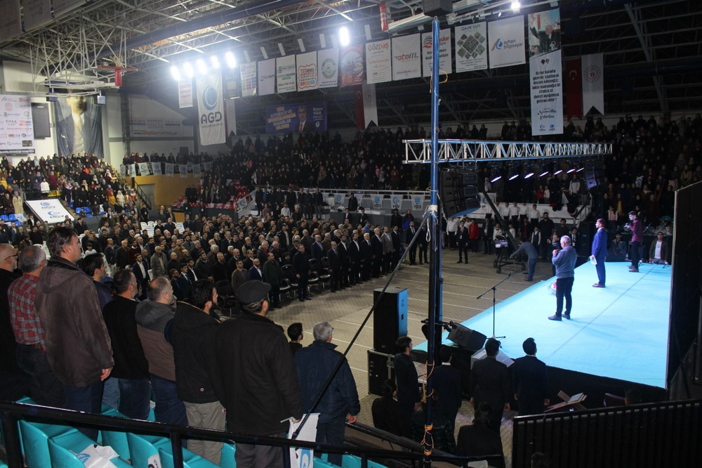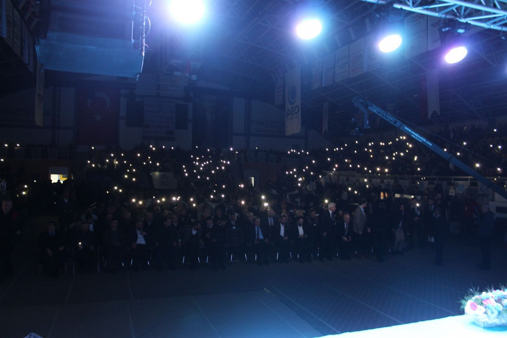 Selamlama konuşması sonrasında program sinevizyon gösterisi ile devam etti. Programın en coşkulu bölümü Mehteran grubunun salona girişiyle yaşandı. AGD ilçe teşkilatlarının ellerinde dövizlerle mehteranla birlikte salona girişi büyük alkış aldı.
