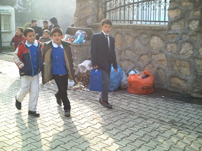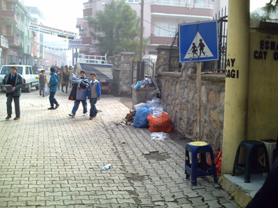 Geyve Atatürk İlköğretim Okulu önünde bulunan çöplere hergün 900 öğrenci selam vermeden geçemiyor.