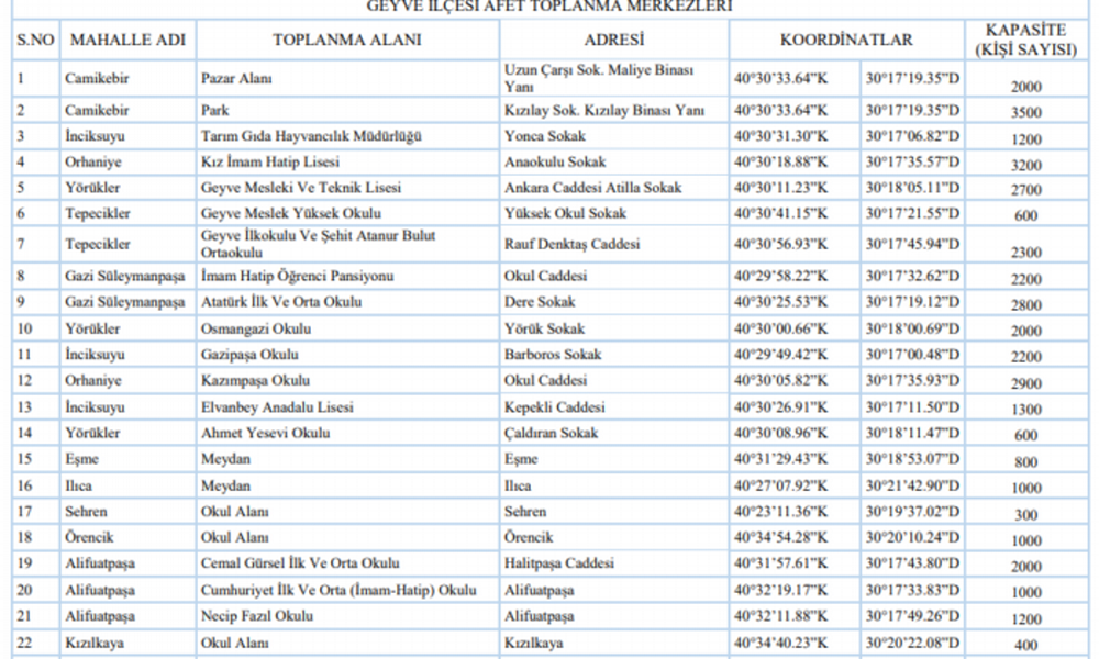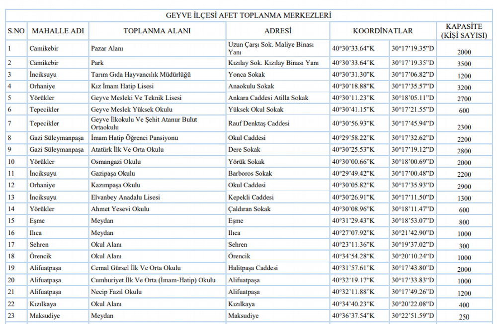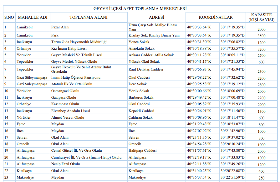 Geyve'de afet toplanma alanları belirlendi . Mehmet AYDOĞAN 11.03.2021 - 08:25:50 Geyve Kaymakamlığı, olası bir afet anında vatandaşlarımızın toplanabileceği afet toplanma alanlarını belirledi. #geyve #afet #toplanma #