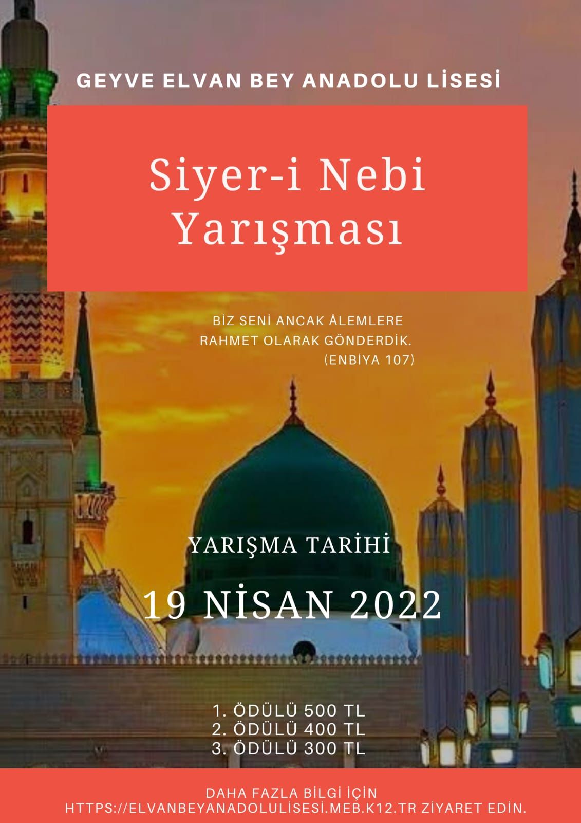 Mübarek Ramazan Ayı'nın kokusunun dimağlara ve sinelere kendisini hissettirdiği günlerde, bu kutsî zaman diliminin içerisine bir başka güzellik eklemek adına, Peygamber Efendimiz (sav)'i ve O'nun örnek hayatını gönüllere ve zihinlere nakşetmek ve o cennet rengiyle çekilmiş nakışların çizgilerini daha da belirginleştirip kalıcı hale getirmek amacıyla, okulumuz tarafından , öğrencilerimize yönelik SİYER-i NEBİ YARIŞMASI tertip ediliyor!