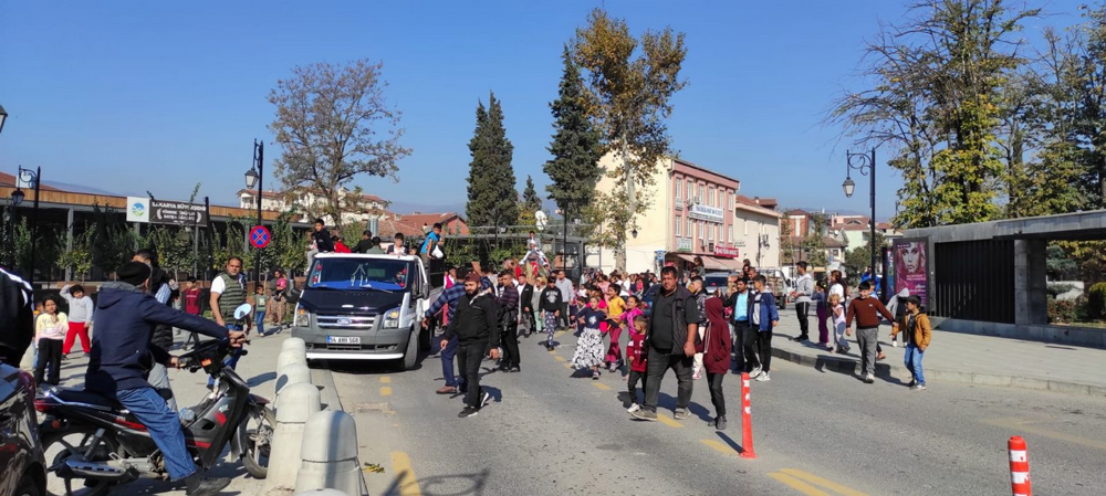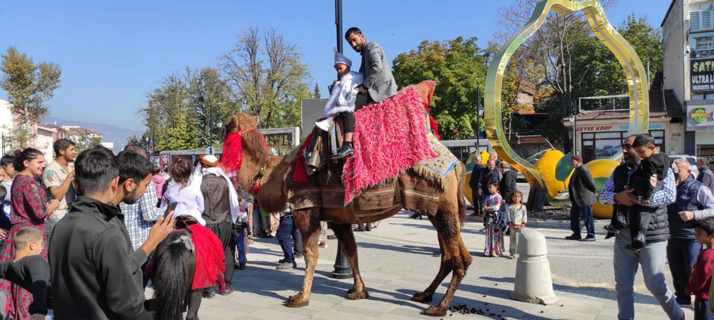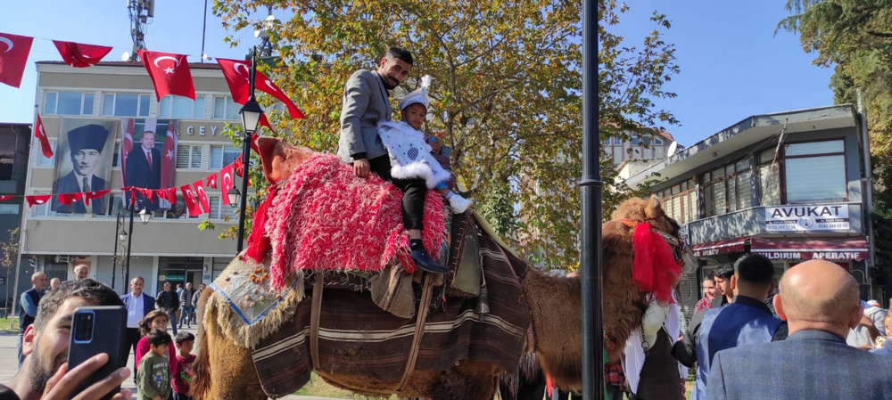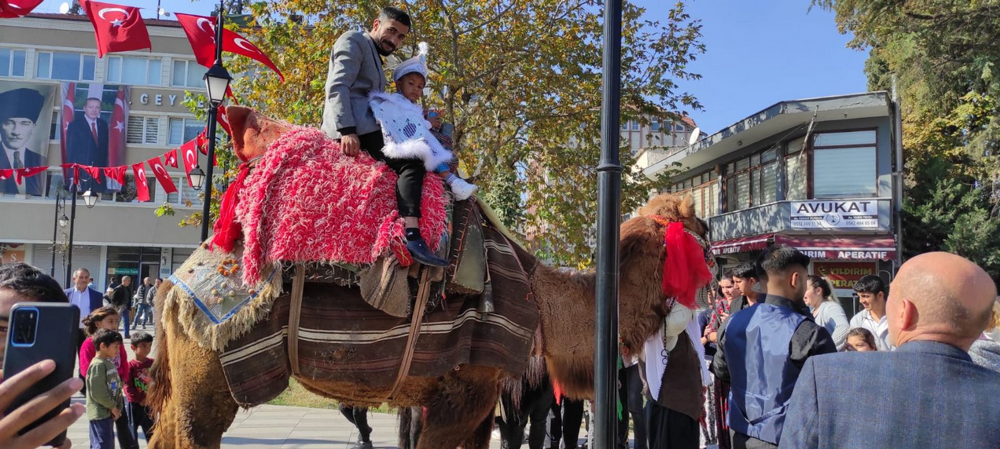 Geyve’nin Çeltikler Mahallesinde oturan İsmet Ağaçdelen’in torunu, Yasin Ağaçdelen’in oğlu İsmet Ağaçdelen sünnet düğününde Bursa’dan getirilen deve ile gezinirken, köçekler de davul zurna eşliğinde halkı coşturdu.