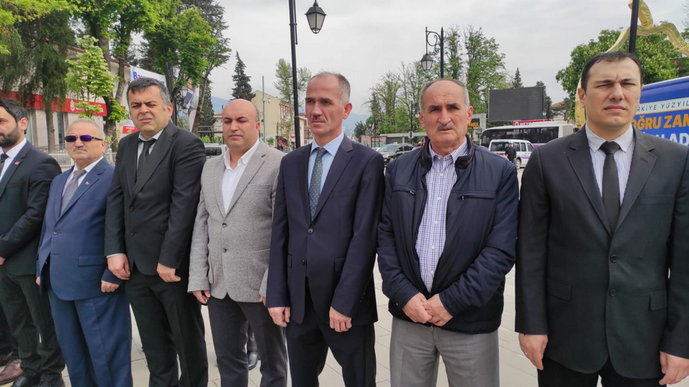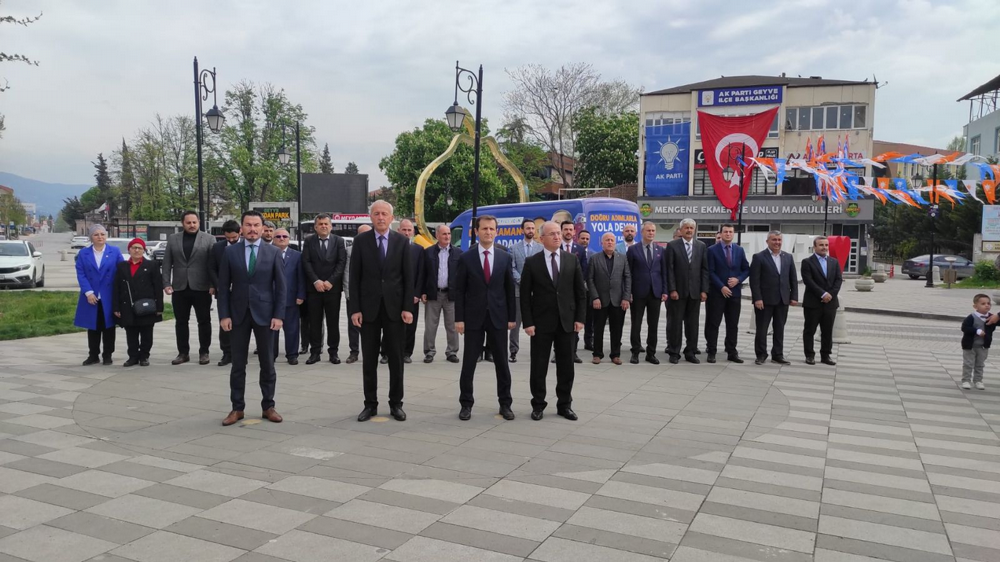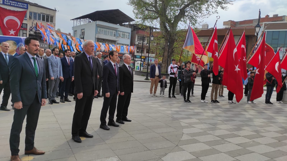 Geyve Cumhuriyet Meydanında düzenlenen çelenk sunma törenine; İlçe Milli Eğitim Müdürü Mehmet Doğan, Şube Müdürleri Remzi Şengül, Bahatdin Aydemir ve Ahmet Özdemir, okul müdürleri, öğretmenler, siyesi parti temsilcileri, öğrenciler ve vatandaşlar katıldı.