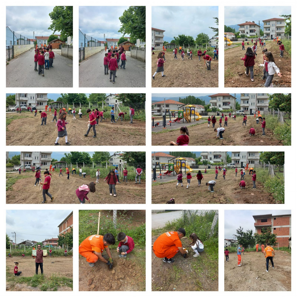 Geyve Ahmet Yesevi İlkokulu öğrencileri, fidan dikti.