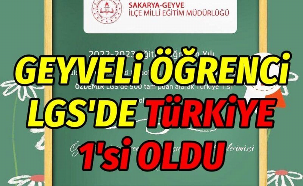 Geyve İlçe Milli Eğitim Müdürlüğü; Geyve Osmangazi Ortaokulu öğrencilerinden Belinay Özdemir’in LGS’de 500 tam puan alarak Türkiye birincisi olan 562 öğrenciden biri olduğunu ilan etti.