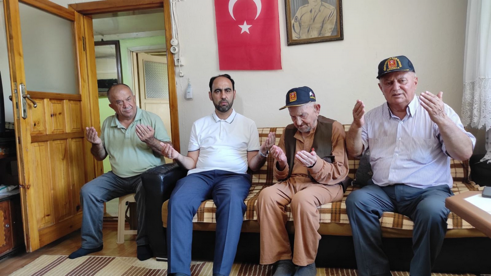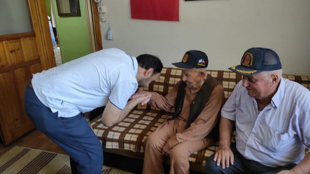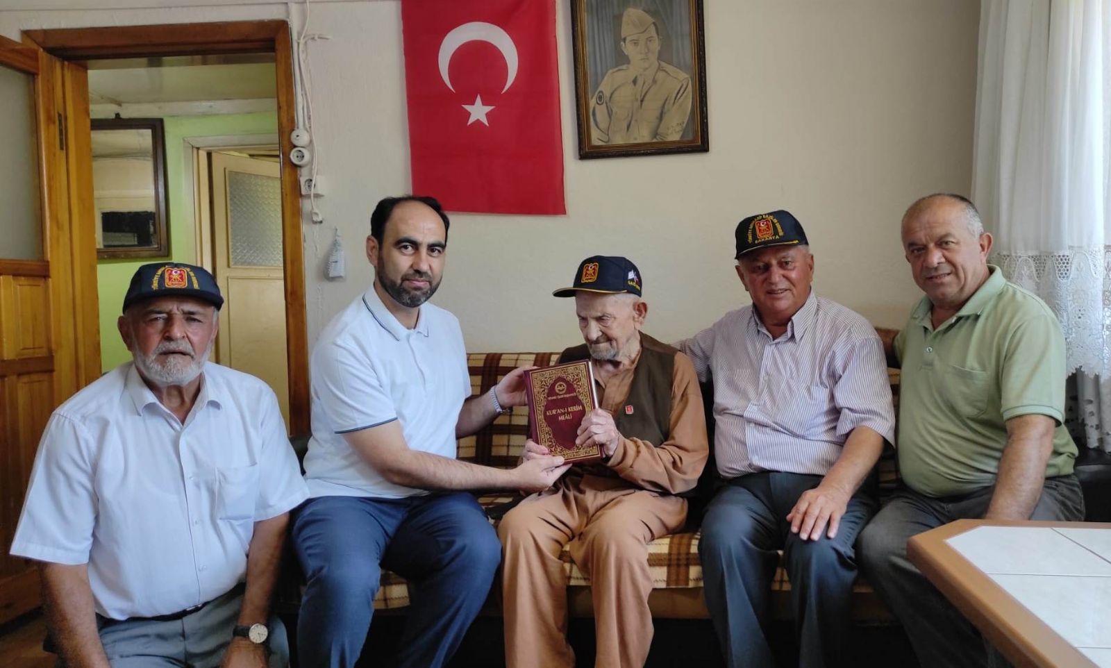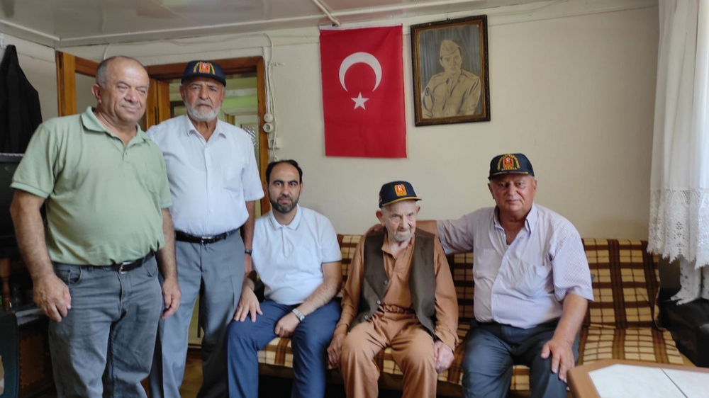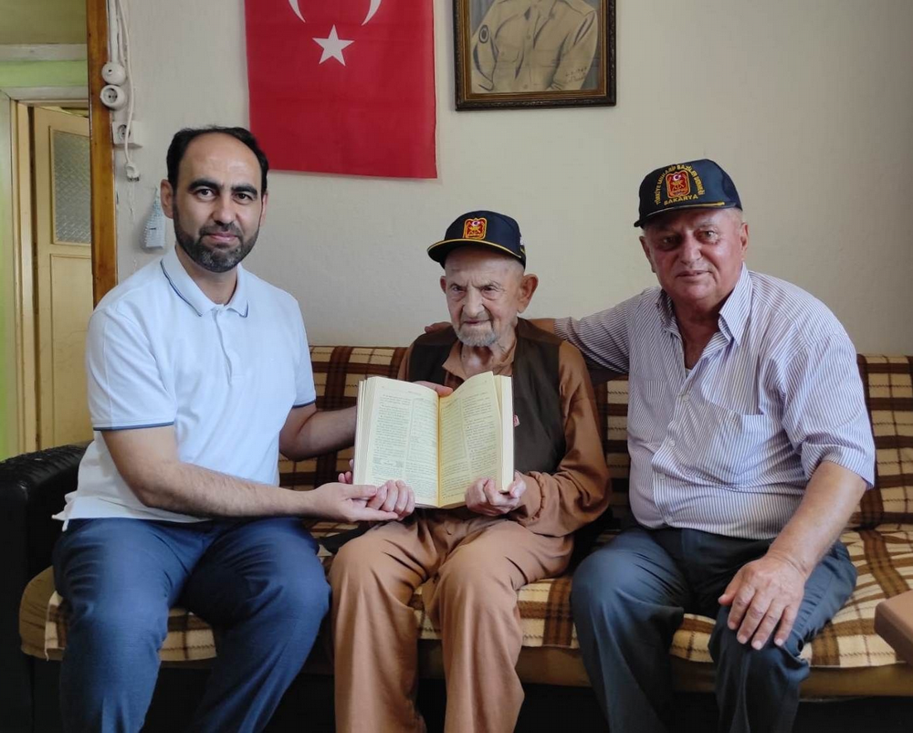 Geyve Müftüsü Murat Okuyar ve Geyve Gaziler Derneği başkanı Kıbrıs Gazisi Ekrem Uysal, Kore Gazisi Rıdvan Özer'i evinde ziyaret ettiler.