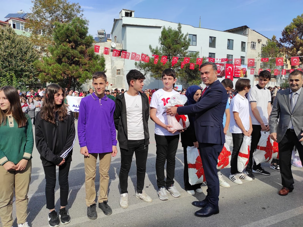 Atatürk Ortaokulunun bahçesinde düzenlenen kutlama programına; ilçe kaymakamı Murat Güven ve eşi, belediye başkanı Metin Atalay ve eşi, daire amirleri, okul müdürleri, siyasi parti temsilcileri, gaziler, öğretmenler, öğrenciler ve çok sayıda vatandaş katıldı.
