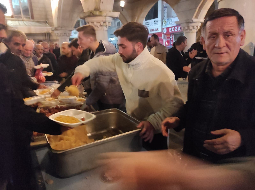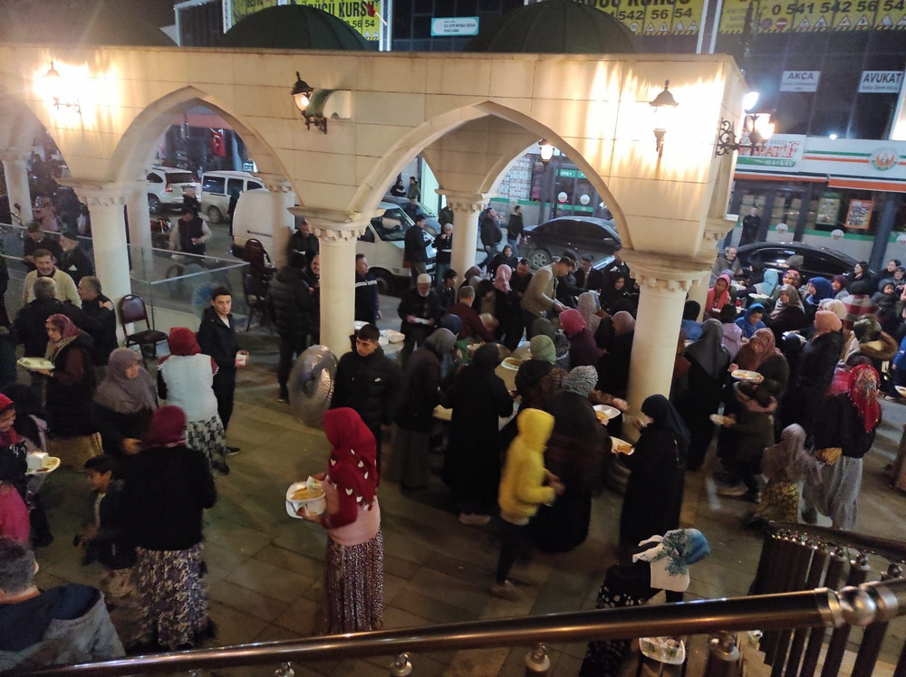 Yatsı namazından sonra cemaate pilav, ayran, helva ikram edildi.