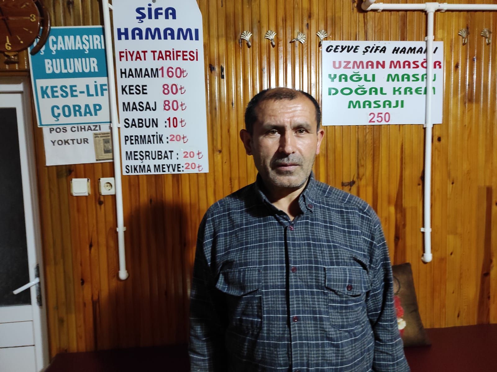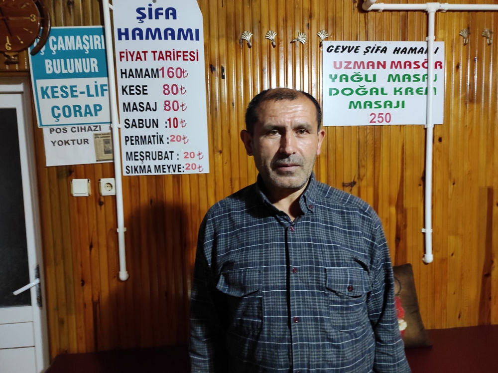 Geyve Şifa Hamamı işletmecisi Kazım Yıldırım: "Sağlıklı yaşamak için hamam kültürü çok önemlidir. Nezle, grip, sinüzit, eklem ağrısına çok iyi gelen buhar sauna sistemi hizmete girdi. Cumartesi günleri saat 13.00- 17.00 arası bayanlaradır. Diğer günler sabah 7.00- 24.00 erkeklerin hizmetindedir. Kese, masaj ve yağlı masaj yapılmaktadır." dedi
