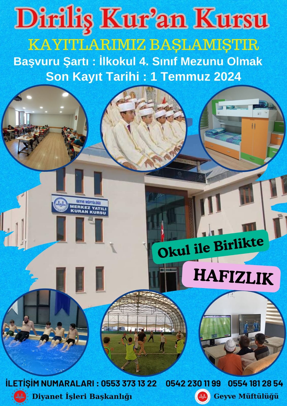 Geyve Müftülüğü Diriliş Kur'an Kursu kayıtları başladı.