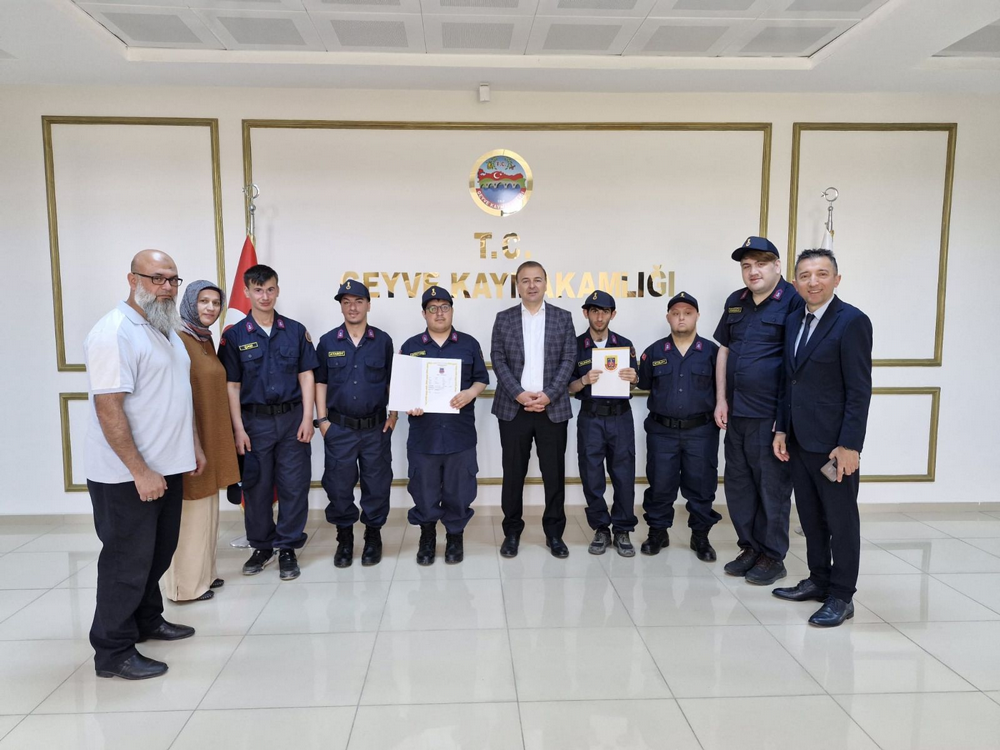İl Jandarma Komutanlığında temsili askerlik görevini de ifa etmiş olan engellilerimiz; kendi el emekleri ile hazırlamış oldukları "Kaymakamlık Logosunu" Kaymakam Murat Güven'e takdim ettiler. Kaymakam Güven, misafirlerini tebrik ederek başarılarının devamını diledi.