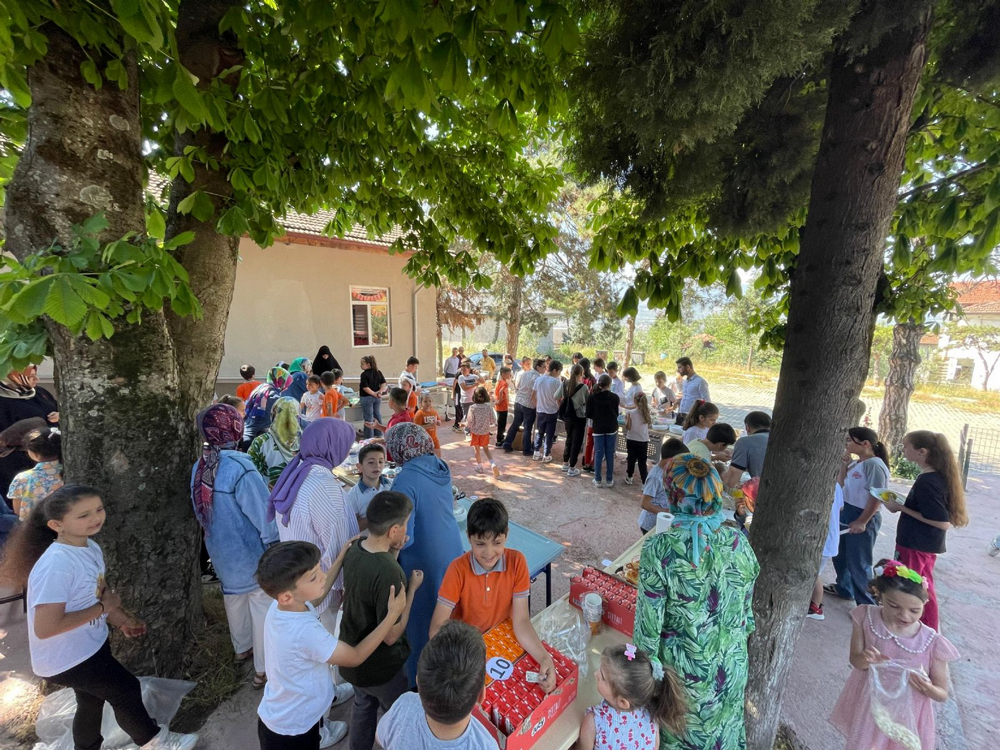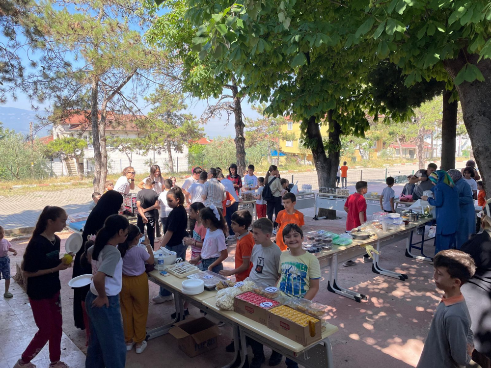 Geyve Eşme İlkokulu öğretmen, veli ve öğrencileri, Filistin'e destek olabilmek için Hayır Çarşısı düzenlediler.