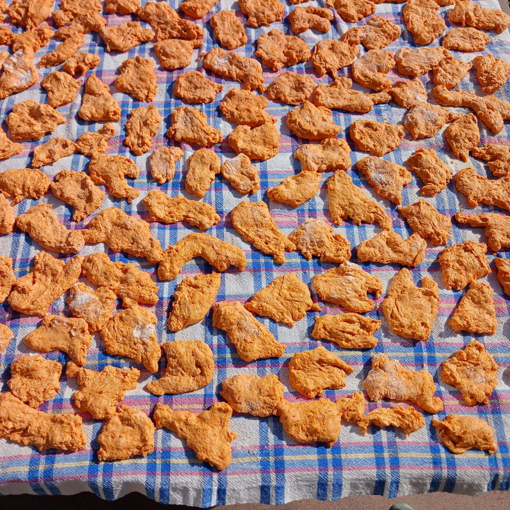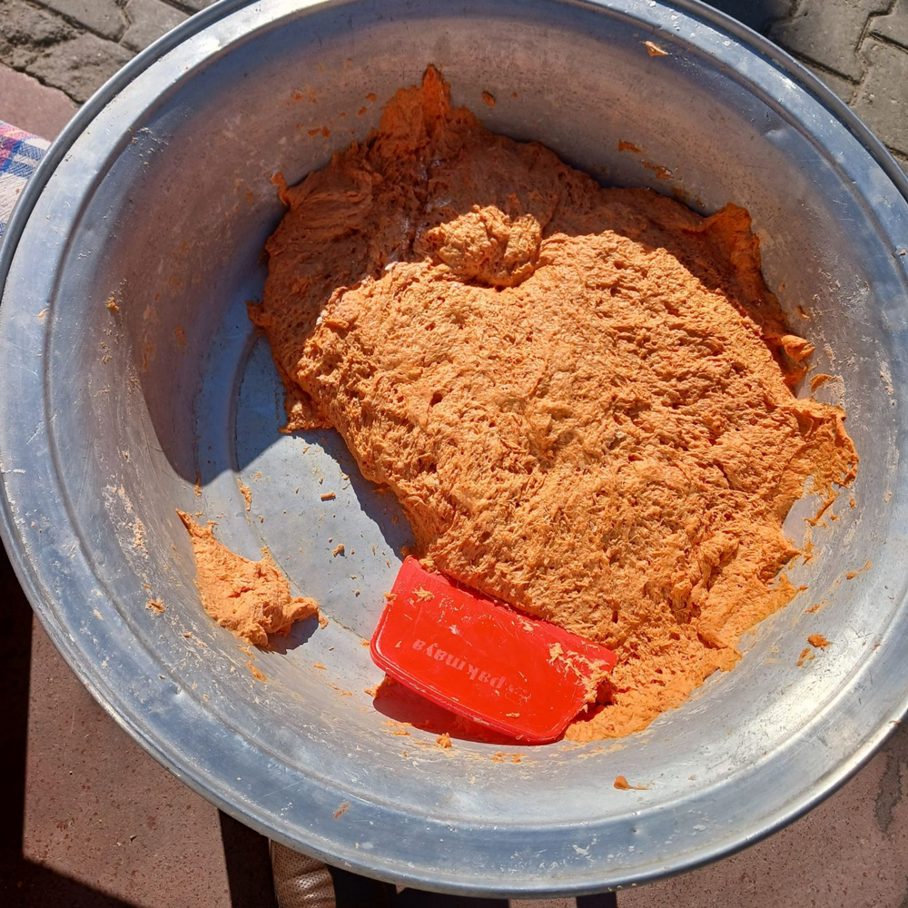 Hazırlanan hamur, serin ve karanlık bir yerde birkaç gün mayalanmaya bırakılır. Mayalanan hamur, küçük parçalara ayrılarak temiz bir bez üzerine serilir ve gölgede kurutulur.