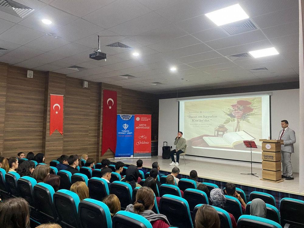 Geyve Anadolu İmam-Hatip Ortaokulu ve Geyve Anadolu Elvanbey Lisesi’nden öğrencilerin izlediği konferansa konuşmacı olarak katılan Geyve müftüsü Mülayim Bayındır, gençlere ailenin önemini anlattı. Bayındır, "Gençler, aile sığınılacak en büyük ve güvenli bir limandır. Sosyal medya ise sığınılacak güvenli bir yer değildir. Huzurlu ve sağlıklı bir toplum ancak sağlam temeller üzerine kurulan ailelerle mümkündür" diyerek aile yuvasının ilahî bir rahmet tecellisi olduğunu ayet ve hadisler ışığında vurguladı.