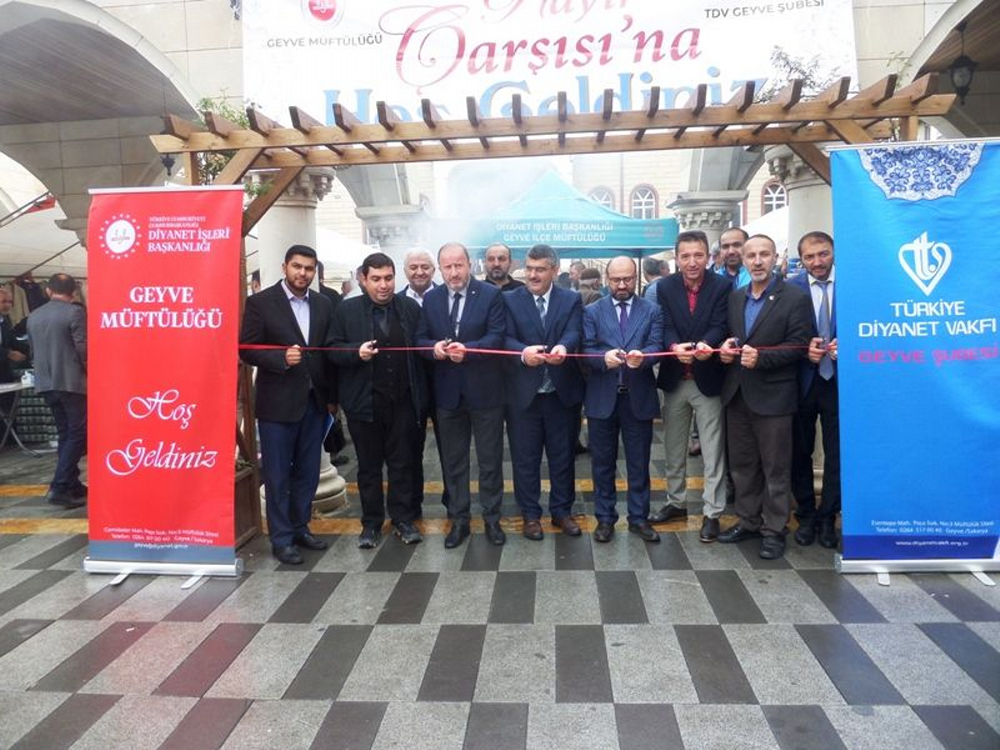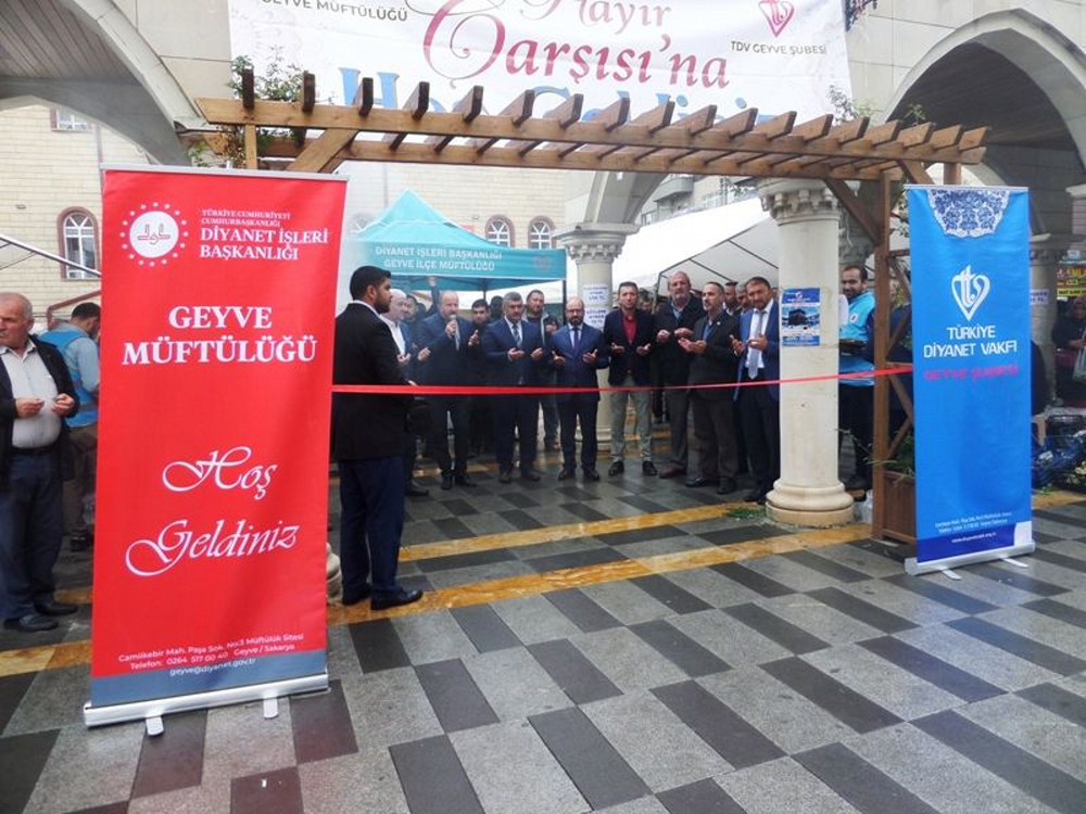 Hayır Çarşısı'nın açılışına Geyve Belediye Başkanı Selçuk Yıldız, İlçe Müftüsü Mülayim Bayındır, İl Müftü Yardımcıları Mehmet Şahin ve Burhan Bilgin, çeşitli kurum müdürleri, din görevlileri ve çok sayıda vatandaş katıldı.