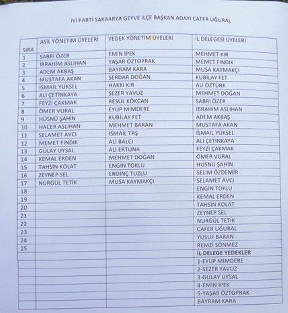 İYİ Parti Geyve'de Yeni Dönem: Cafer Uğural Başkan Seçildi