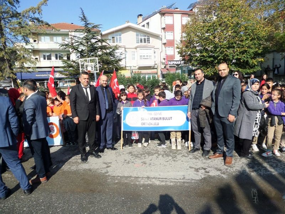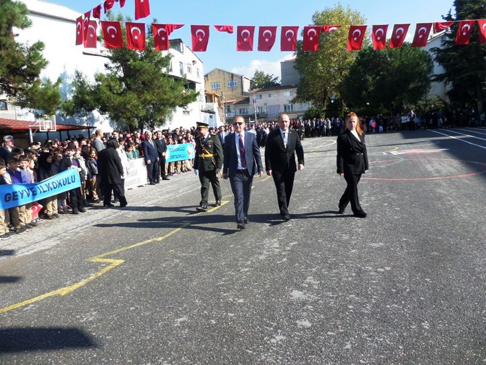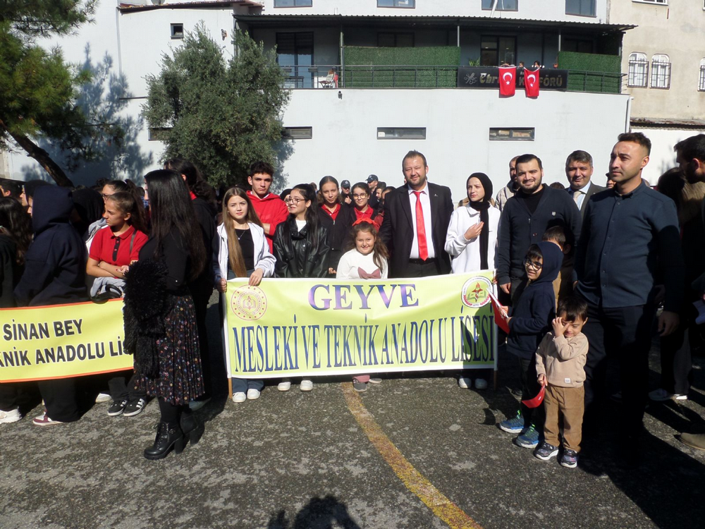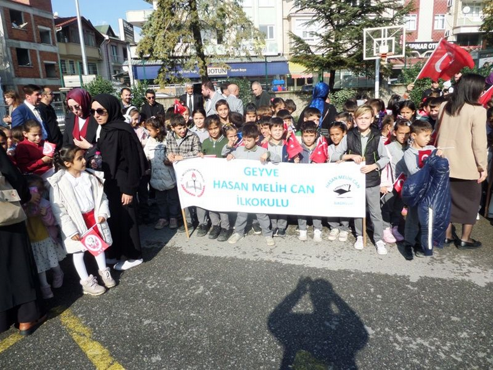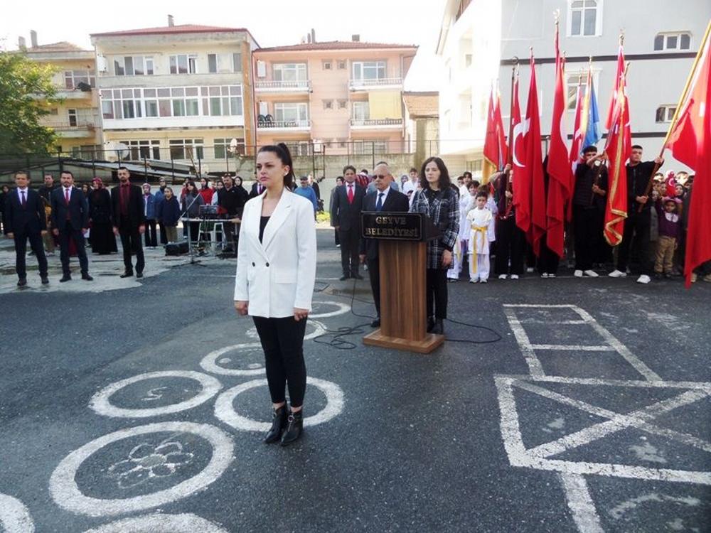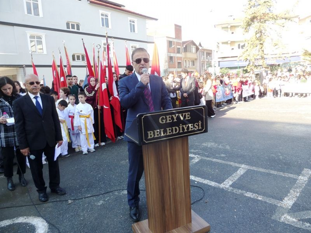 Geyve Atatürk Ortaokulu bahçesinde devam eden kutlama törenine ilçe halkı ve protokolü yoğun ilgi gösterdi. Törene, Geyve Kaymakamı Murat Güven, Garnizon Komutanı Tank Üsteğmen Mustafa Güneş, Belediye Başkanı Selçuk Yıldız, MYO Müdürü İbrahim Taha Dursun, Milli Eğitim Müdürü Aziz Demir, daire amirleri, okul müdürleri, öğrenciler, siyasi parti temsilcileri ve çok sayıda vatandaş katıldı.