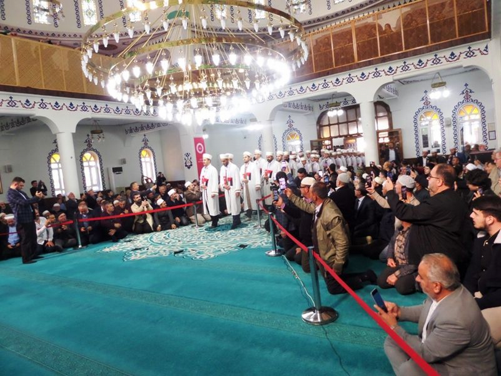 Geyveliler, Kur’an-ı Kerim tilaveti ve kasideler dinleyerek manevi yönden coştular. Geyve Müftülüğü Yatılı Diriliş Kuran Kursu’ndan mezun 35 hafızın taçlandırıldığı "Hafızlık İcazet Merasimi", 30 Ekim 2025 Perşembe günü saat 11.00'de Merkez Sinan Bey Camii'nde yapıldı.