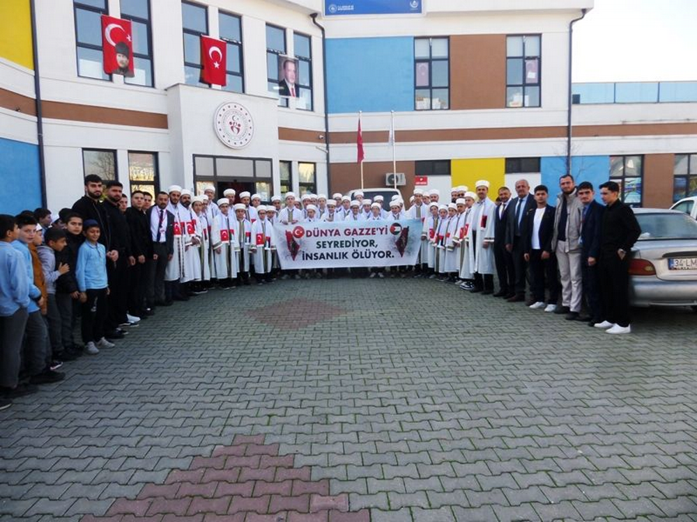35 genç Hafız, hocaları eşliğinde Filistin’e destek yürüyüşü yaptılar. Geyve Gençlik Merkezi’nden başlayan Gazze’ye destek yürüyüşünde genç hafızlar “Dünya Gazze’yi Seyrediyor, insanlık ölüyor.” yazılı afişi taşıdılar. Bu yürüyüşe yüzlerce vatandaş da eşlik etti.