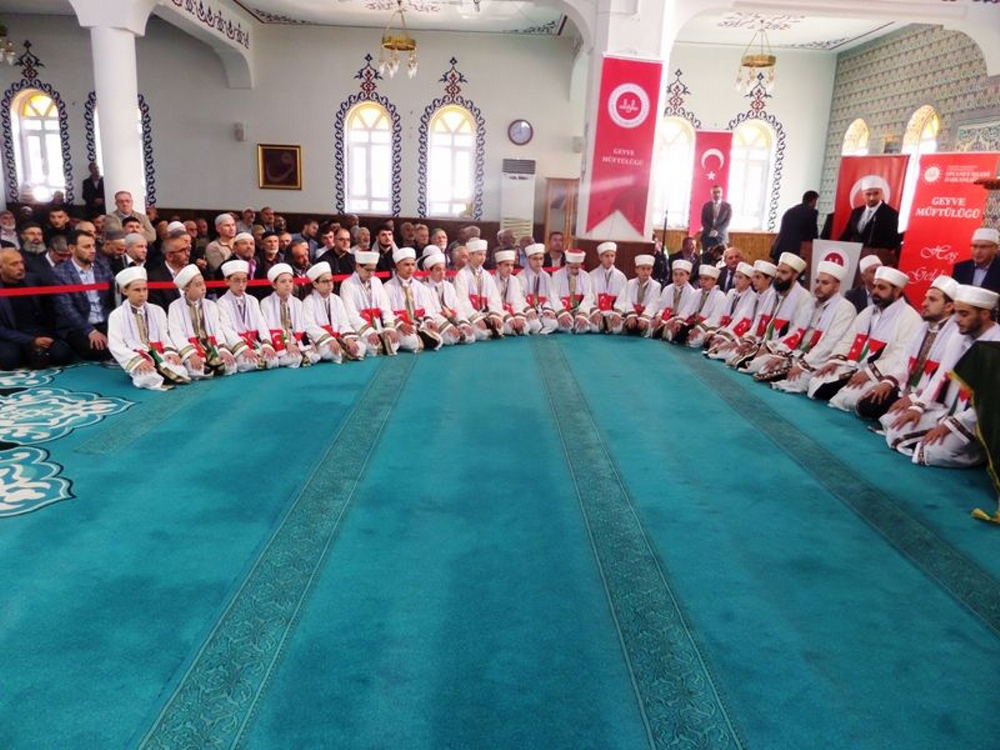 Geyve müftüsü Mülayim Bayındır, Diriliş Kuran Kursu Dernek Başkanı Mustafa Kılıç ve diğer konuşmacılar yaptığı konuşmalarda Kuran-ı Kerim okumanın, Hafız olmanın önemini vurguladılar. Müftü Bayındır şunları söyledi: Hayır sever iş adamları ve vatandaşlarımızın sayesinde ilçemizde 4-6 yaş gurubu çocuklar için Kuran Kursları yapıldı. Bu kurslarda 260 öğrenci eğitim görmektedir. Kuran Kursu yaptıran hayırseverlerden, çocuklarını Kuran öğrenmeye gönderen velilerden ve görev yapan hocalardan Allah razı olsun. Veysel Kılıç ve Ragıp Sevil hocalar söyledikleri ilahilerle gönülleri okşadılar.