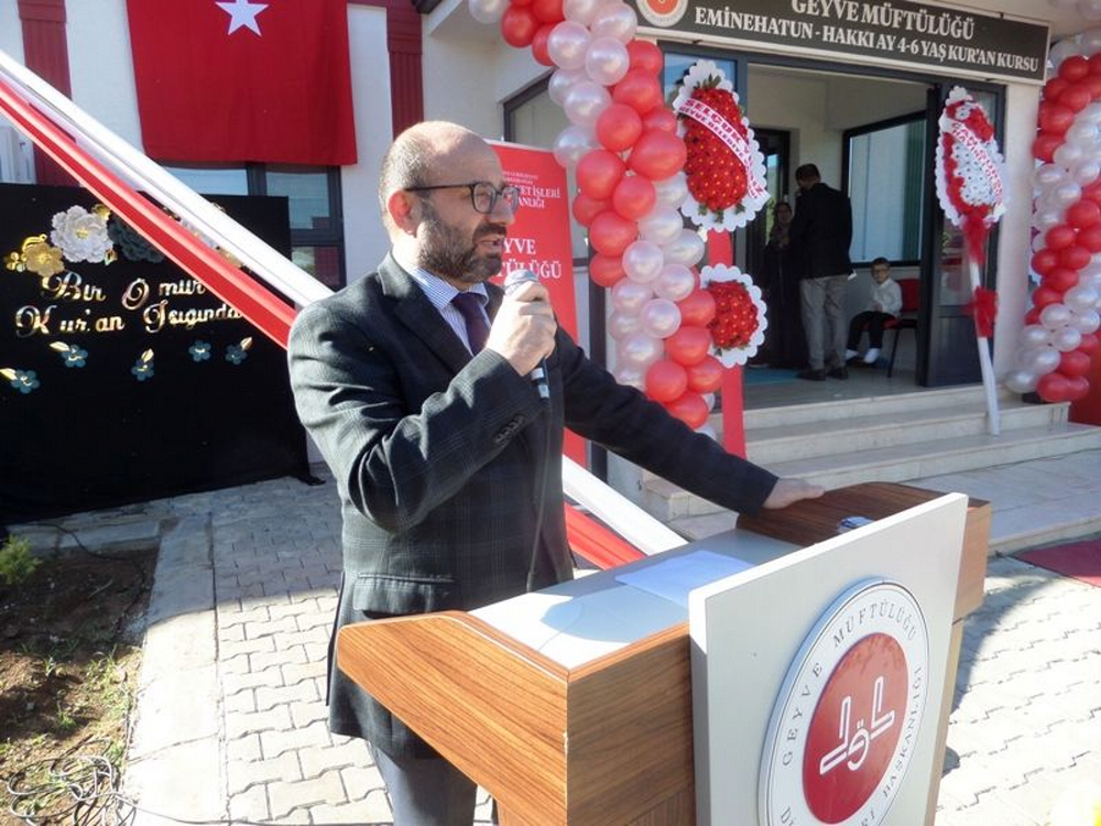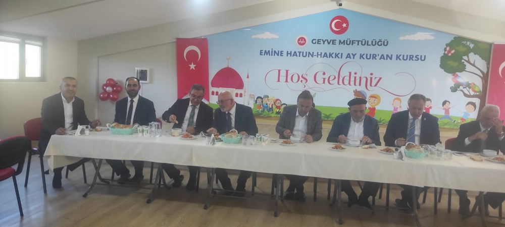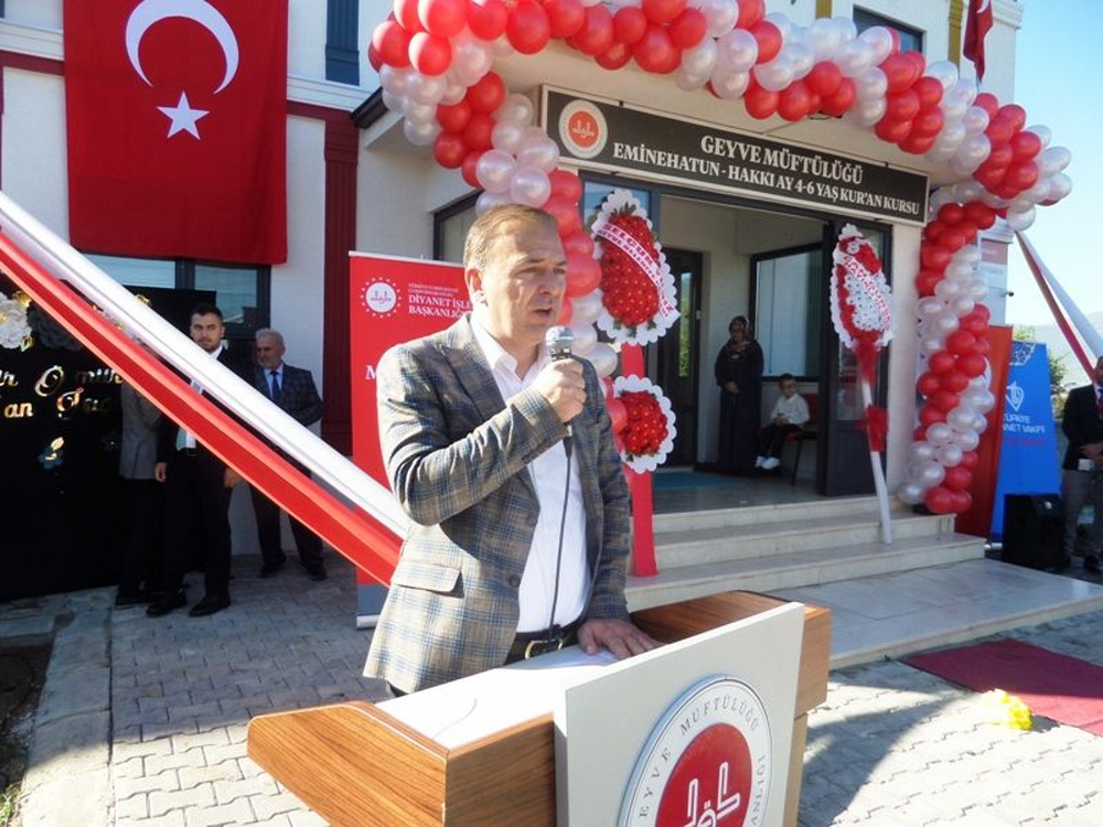 Öğle namazı kılındıktan sonra camideki protokol ve cemaat ile Sakarya milletvekili Murat Kaya iş insanı Eyüp Ay tarafından Taraklı yolu kenarında yaptırılan Emine Hatun - Hakkı Ay 4-6 Yaş Kur’an-Kursu’nun açılışına katıldı. Eyüp Ay katılımcıları kapıda karşıladı. Kur’an-ı Kerim okundu. Müftü Mülayim Bayındır, Mehmet Şahin, Belediye başkanı Selçuk Yıldız, Sakarya milletvekili Murat Kaya ve Geyve Kaymakamı Murat Güven yaptıkları konuşmalarda Kuran okumanın, Kuran Kursu yaptırmanın önemini vurguladılar. İş insanı Eyüp Ay’a ve katkıda bulunan Öğretmen Recep Tosun’a teşekkür ettiler. Minik öğrencilerin gösterisi beğenildi. Eyüp Ay ve Öğretmen Recep Tosun’a teşekkür plaketi verildi. Dualarla Kuran Kursu’nun açılış kurdelesi kesildi. Eyüp Ay, davetlilere yemek ikram etti.