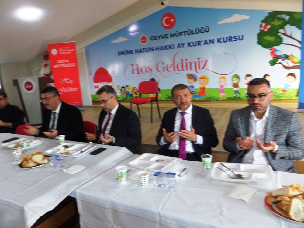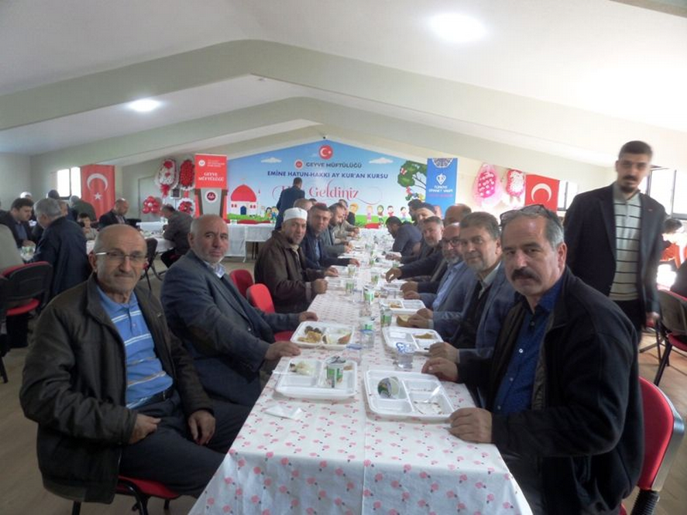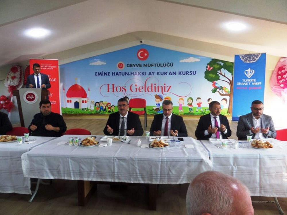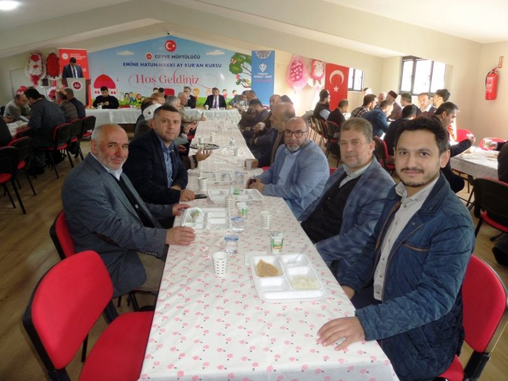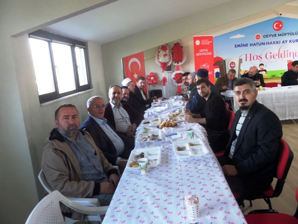 Emine Hatun- Hakkı Ay Kuran Kursu salonunda düzenlenen veda yemeğine daire amirleri, Geyve Müftülüğü din görevlileri ve vatandaşlar katıldı. Programı Aziz Çifçi sundu. Diriliş Kuran Kursu hocası Abdülhamit Türk Kuran-ı Kerim okudu.